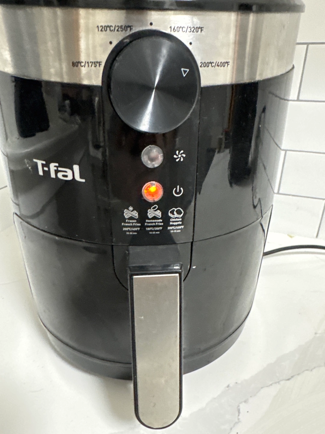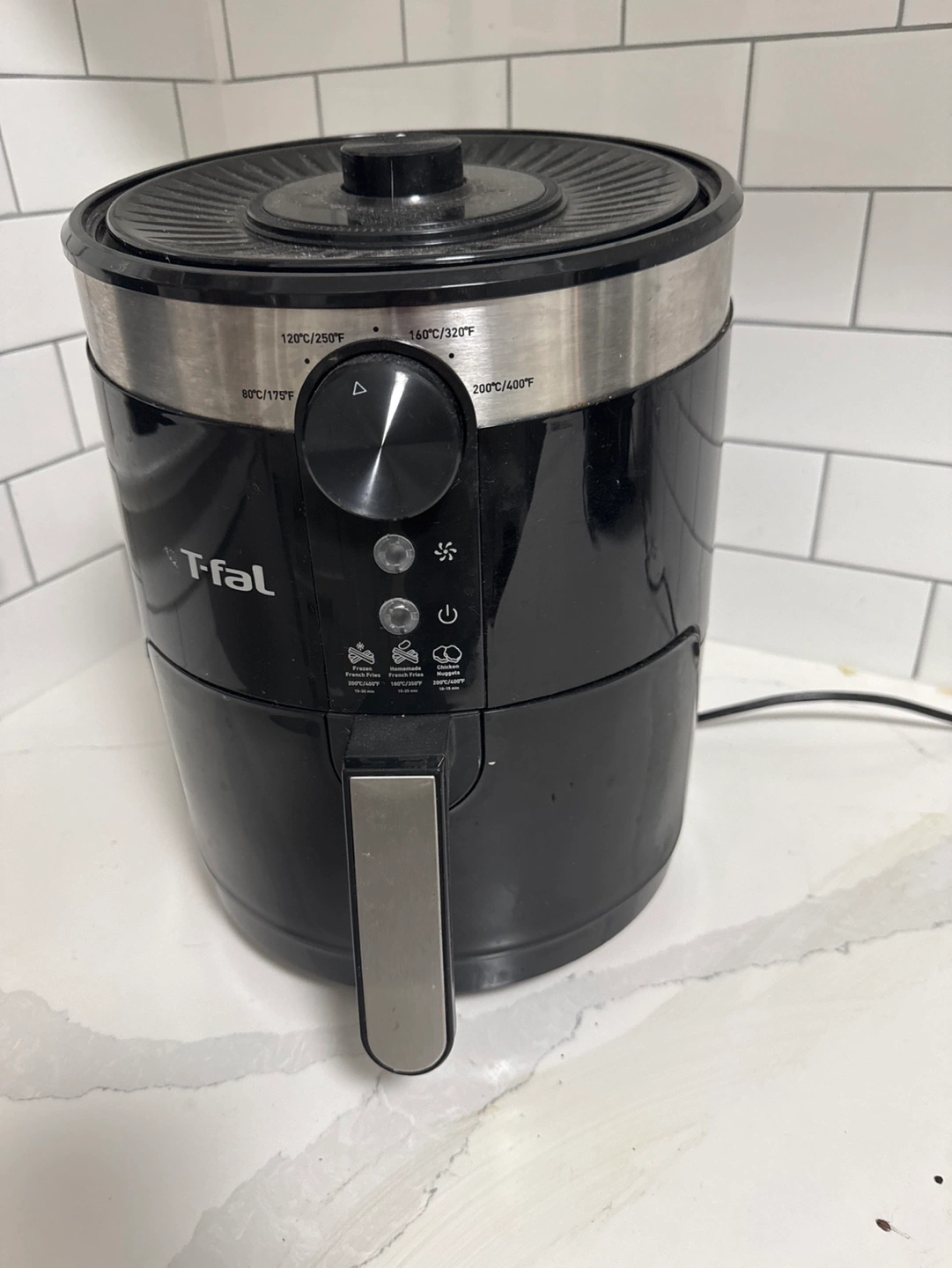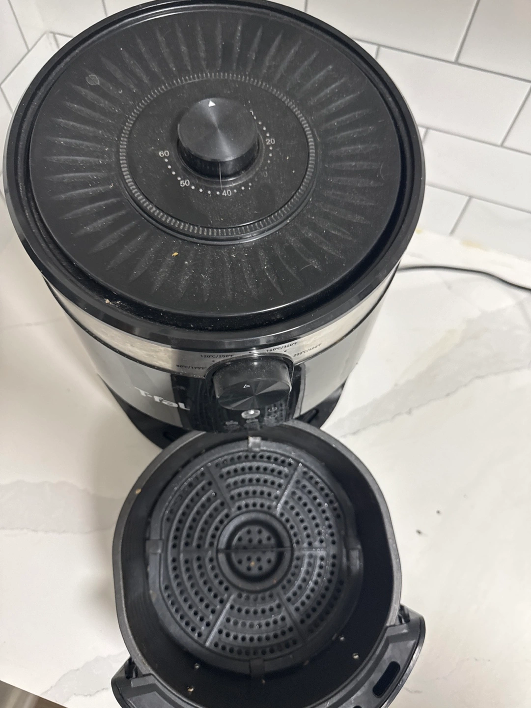 175Black air fryer. Features multiple cooking functions. Includes a removable basket and crisper plate. Good condition.