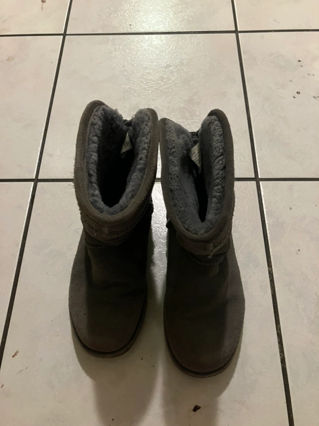 Women's grey suede boots. Button accents. Warm fleece lining. Good condition.