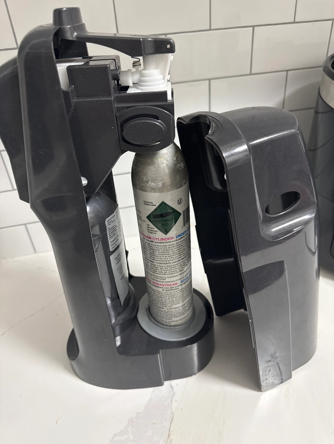 175Used SodaStream carbonation machine. Great for making sparkling water at home. Includes CO2 cylinder. Dark grey colour.