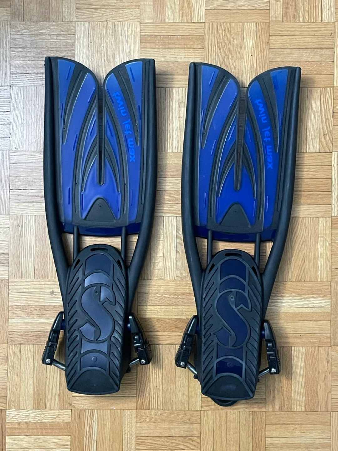 Scubapro Twin Jet Max fins, size small. Includes a Snorkeler Pro snorkel. Excellent for snorkeling or diving. good condition.