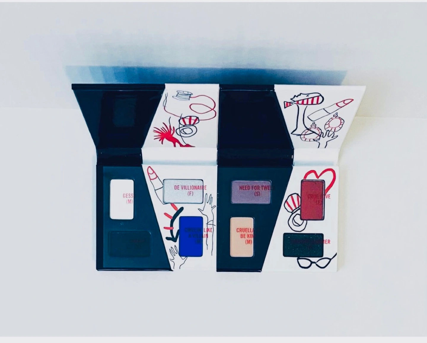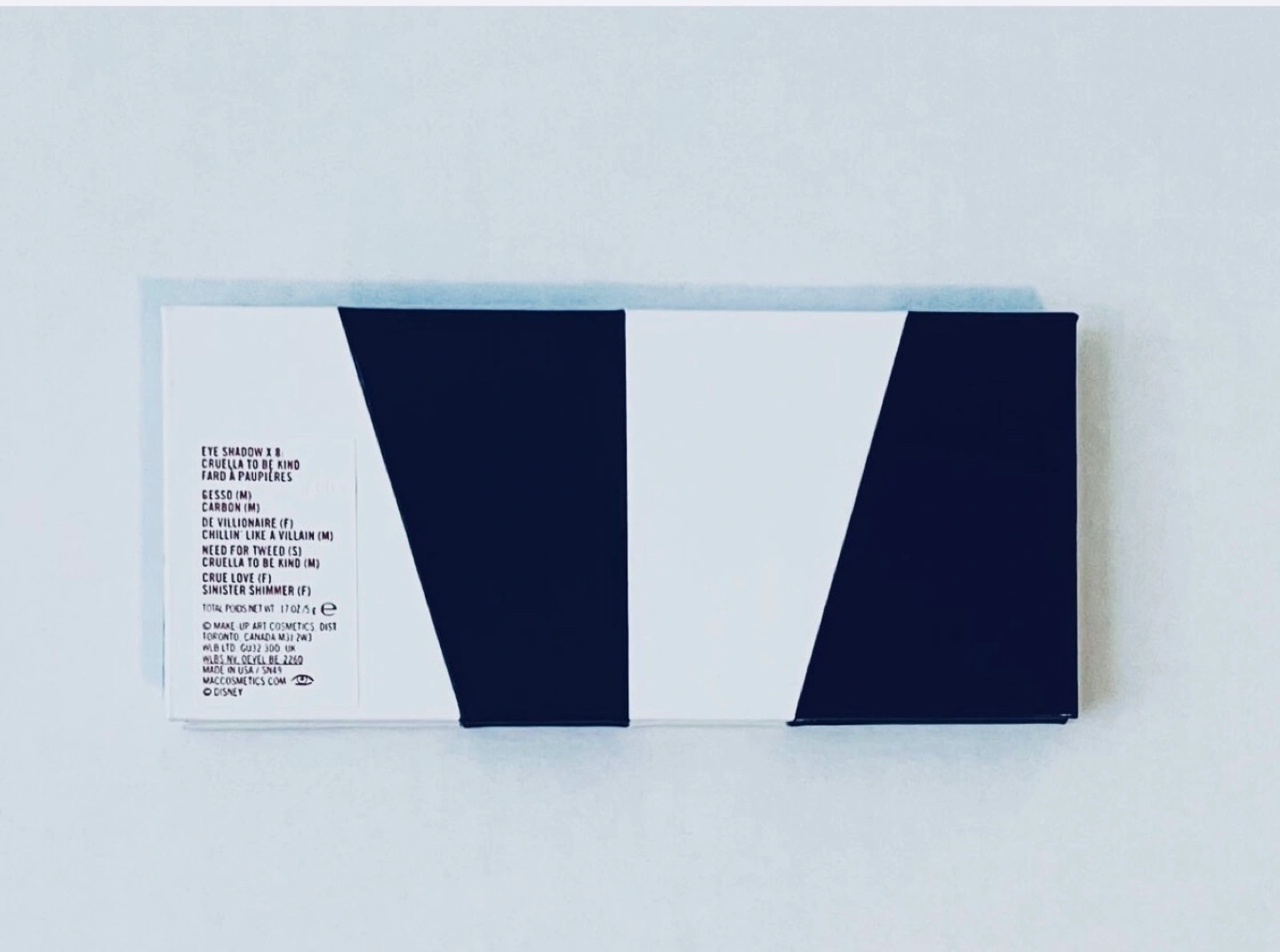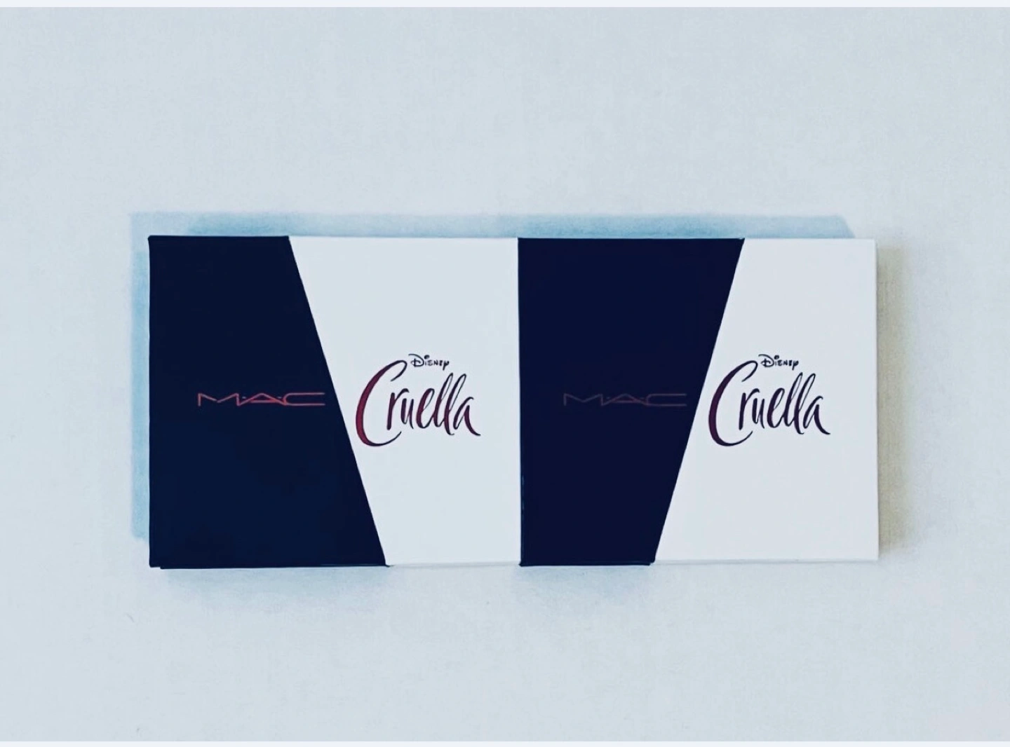 25New MAC Cosmetics eyeshadow palette. Features six eyeshadow shades. Disney Cruella de Vil themed packaging.