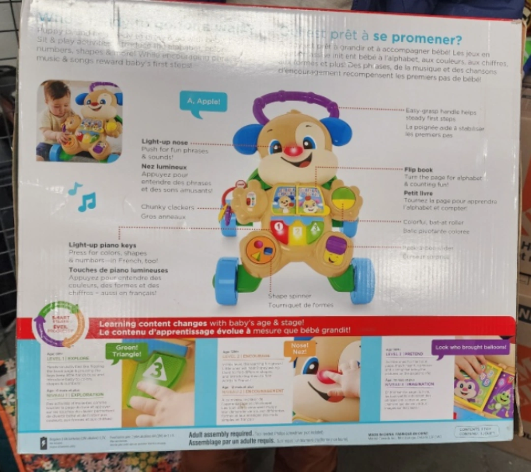 Unopened pack. Interactive puppy walker, great for encouraging baby's first steps. Features lights, sounds, and activities. 75+ songs, phrases, and melodies. Suitable for ages 6-36 months. Retail price 54$. Selling for 30$