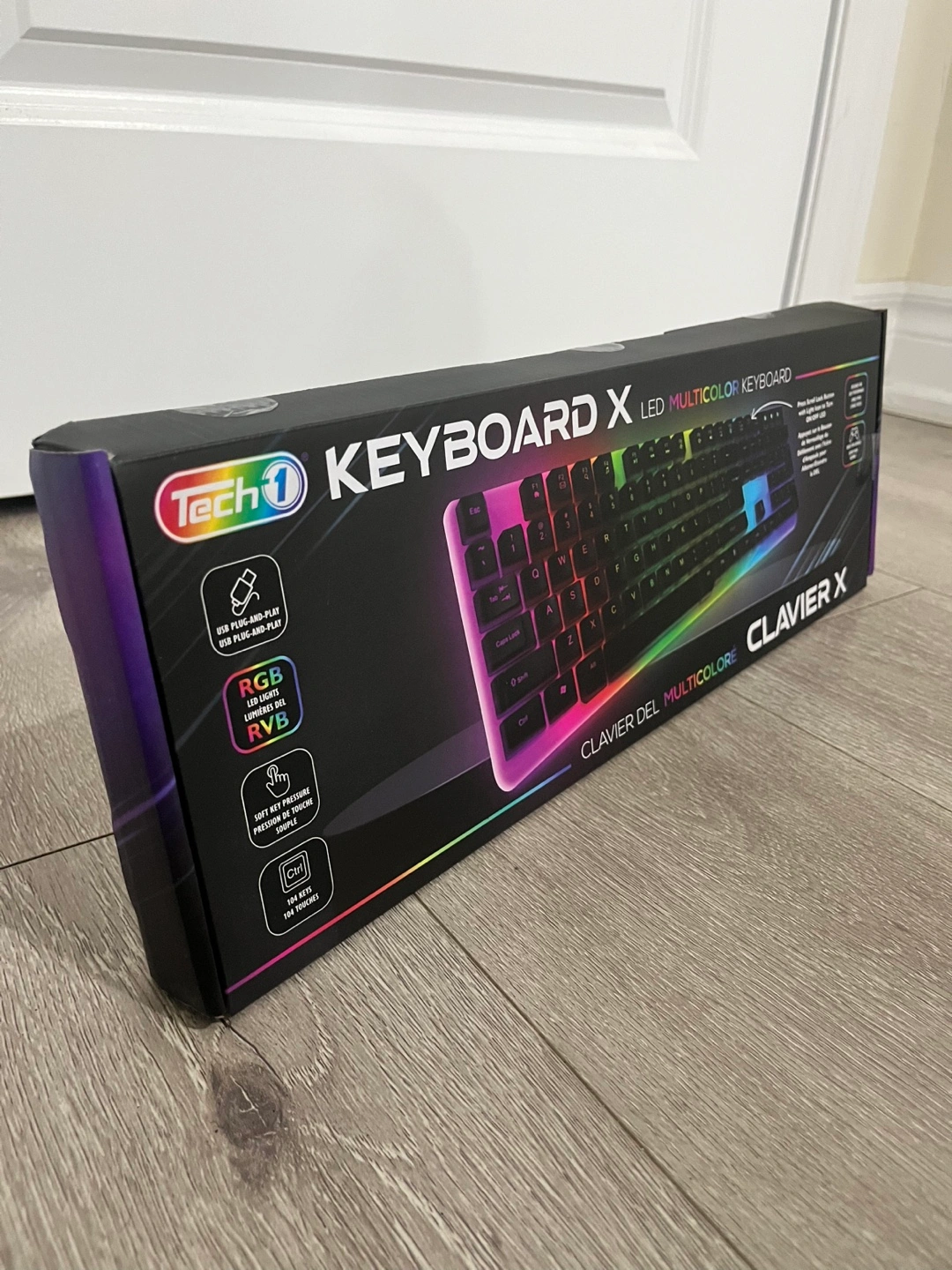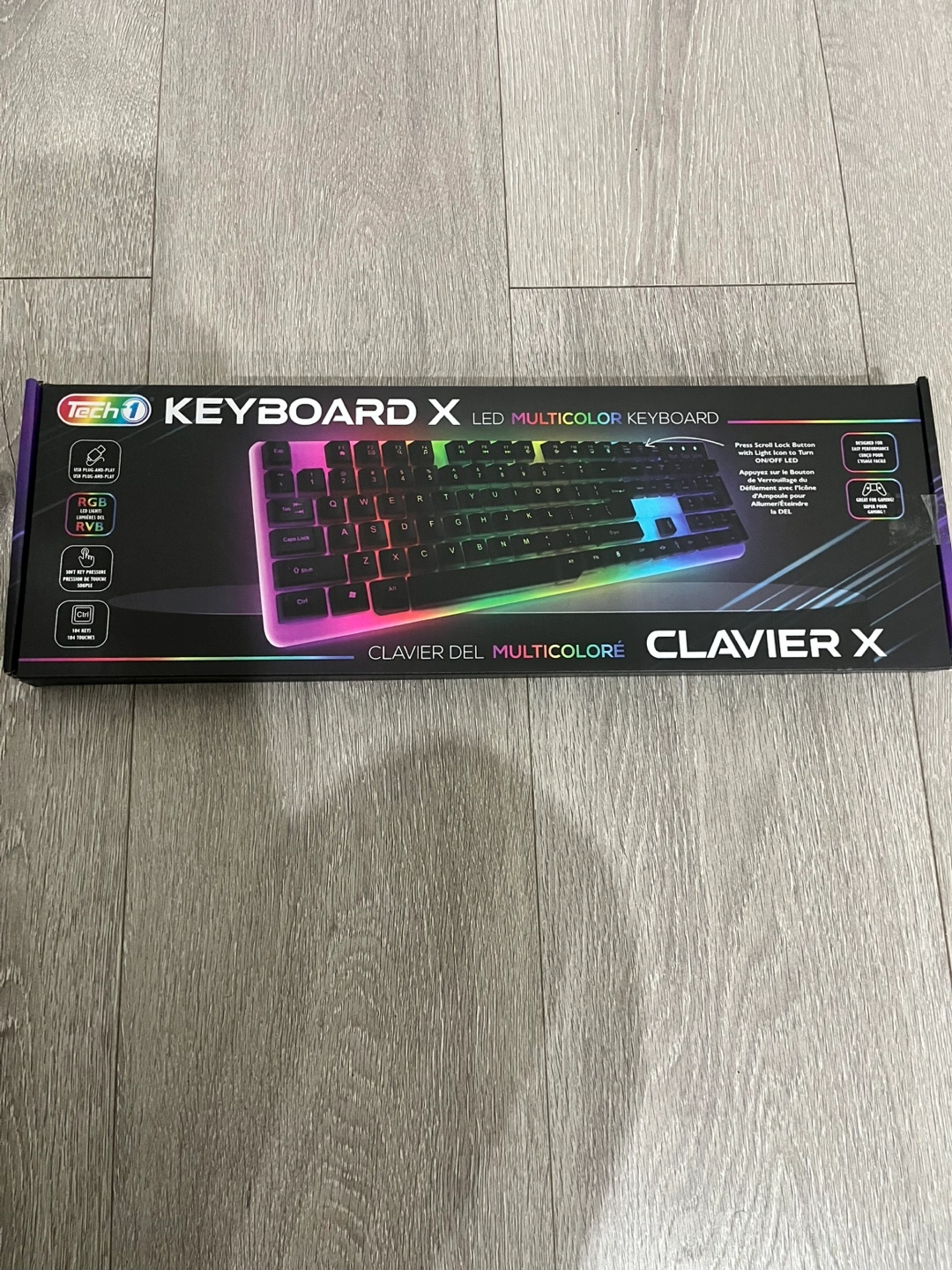 Brand new in box. LED multicolor keyboard. RGB lighting. Features multiple functions. USB plug and play.