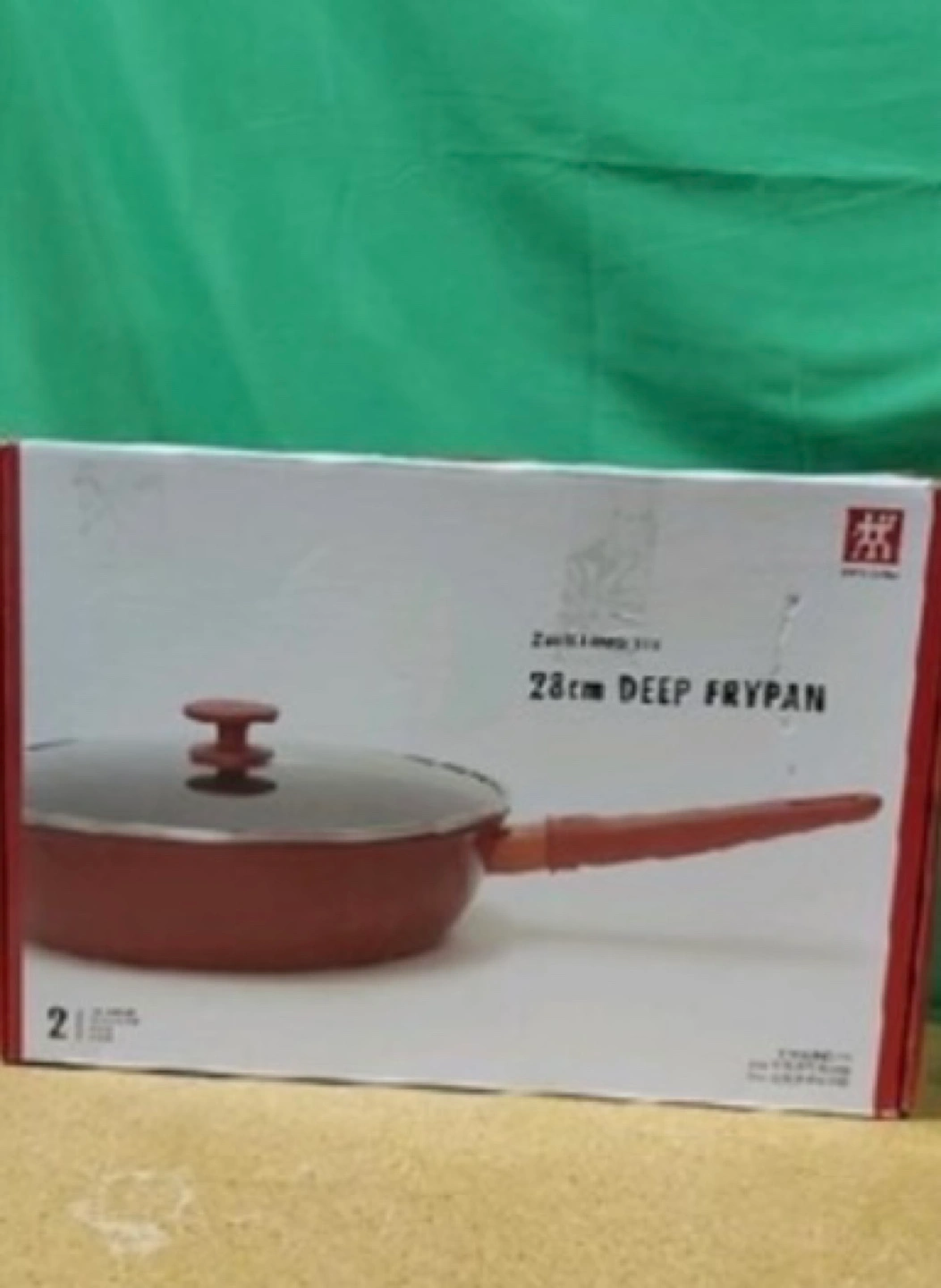 Zwilling Brand new, in box. Red, 28cm deep frying pan. Wooden handle. Glass lid included.