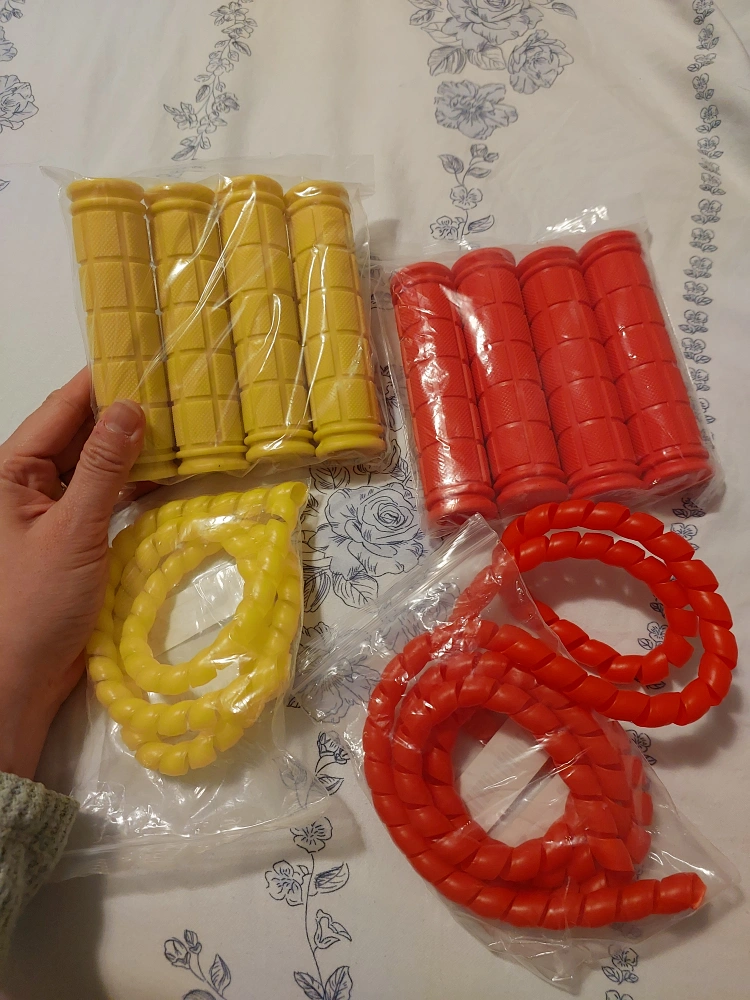 4 Yellow & 4 Red Bike Grips + 2 Spiral Cable Sleeves