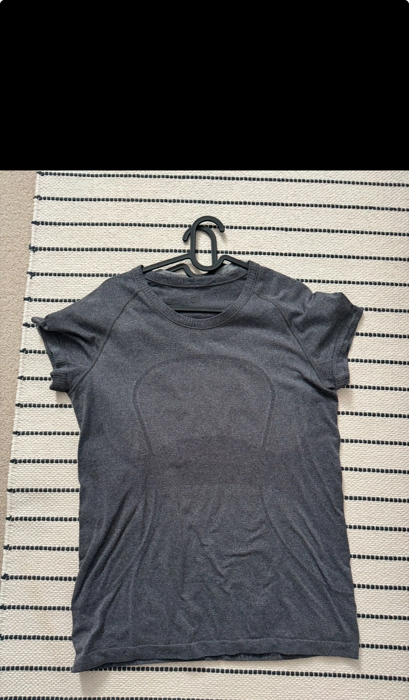 Heathered black Lulu swiftly short sleeve shirt. Great for workouts. Size 12.