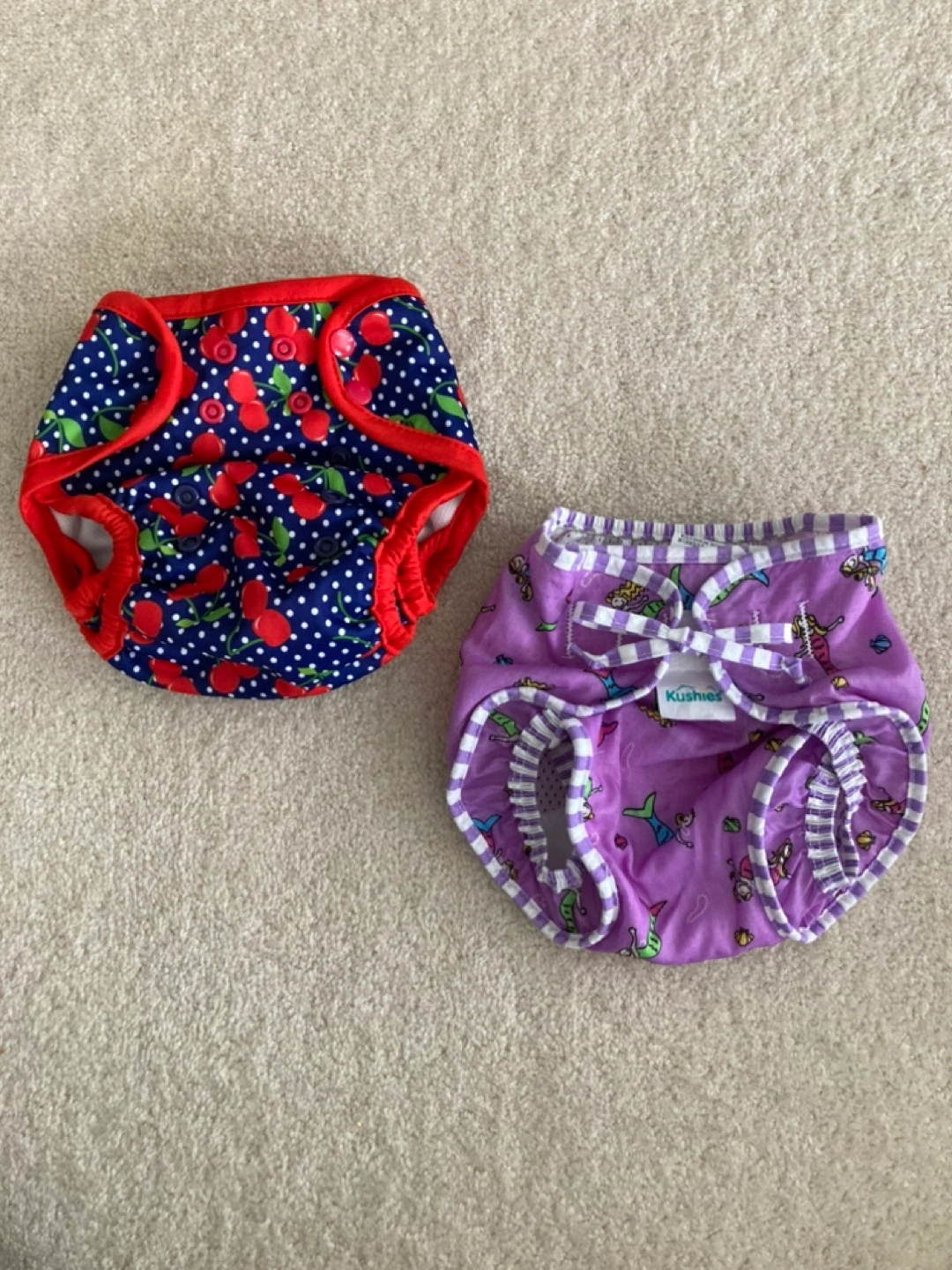 Kushies reusable swim diaper in mermaid purple. Clean, elastic in good shape, size medium.