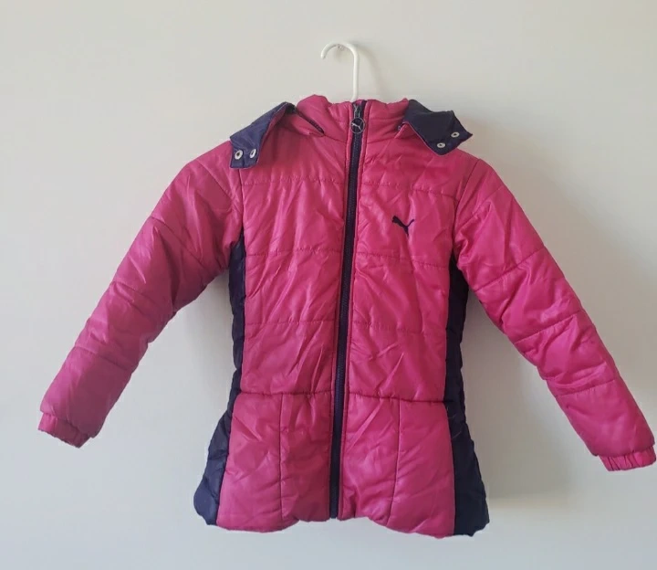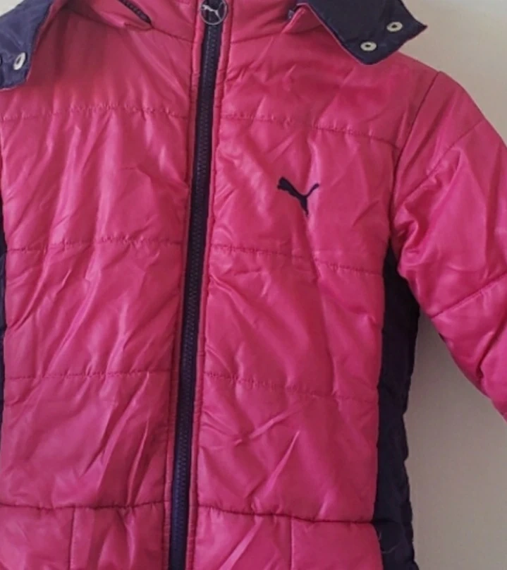 Girls Puma puffer jacket. Pink and navy blue colour block design. Zipper closure. Attached hood. Excellent condition