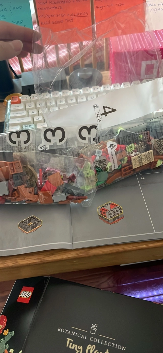 I got a whole Lego tiny plants set for secret Santa this year and built all the plants, but I don’t have room for these last 2 so I’m giving it away! Both are unopened and will come with the instruction booklet for them. I circled the ones that you’ll be getting. Pack #3 had pieces for 2 plants and I built one of them, but all the parts for the second plant is in the bag.