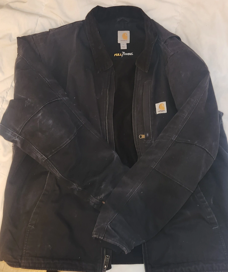 Men's Carhartt Full Swing jacket. Black, zip-up. Heavyweight durable material. Excellent for colder weather.