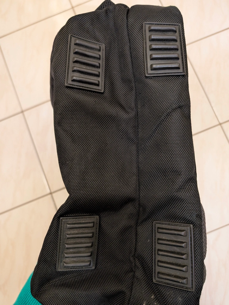 Black backpack. Multiple compartments and pockets. Ergonomic back support system. Good for everyday use or travel.