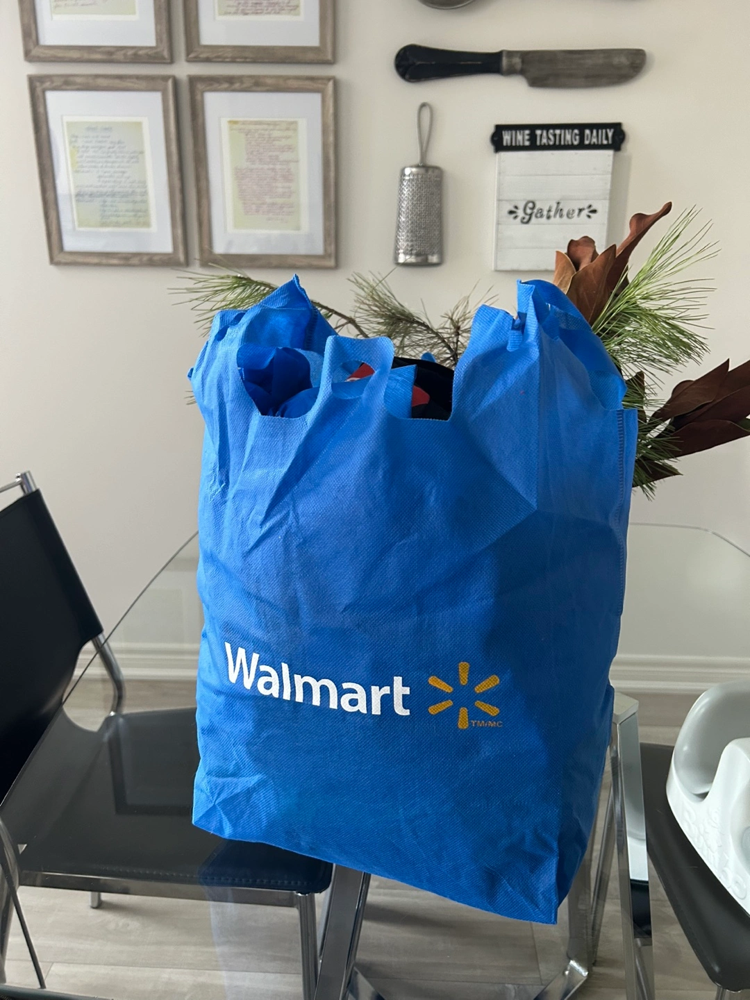 Blue reusable Walmart shopping bag. Minor wear and tear. Great for shopping or carrying items.
