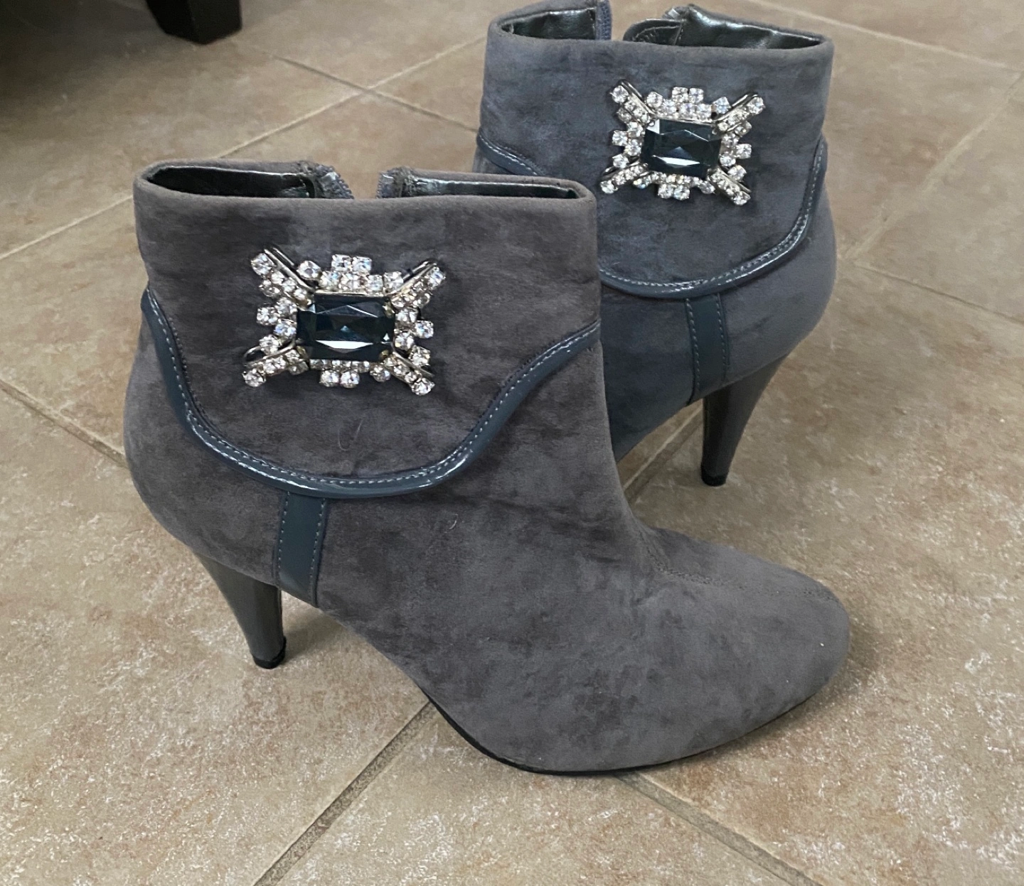 Buy & SellGrey Suede Ankle Boots with CrystalGrey Suede Ankle Boots with Crystal$12Pair of grey suede ankle boots. Features a crystal embellishment. High stiletto heels. Zip closure.ConditionNewSize6WHERE TO MEETCheck LocationView MapSELLERAnnaAurora Centre N331 review1 chats·1 favorites·17 viewsSEND CHAT TO SELLERHi Anna! I’m interested in your listing.Hi Anna! I’m interested in your listing.Get the Karrot app to chatSign In to chat