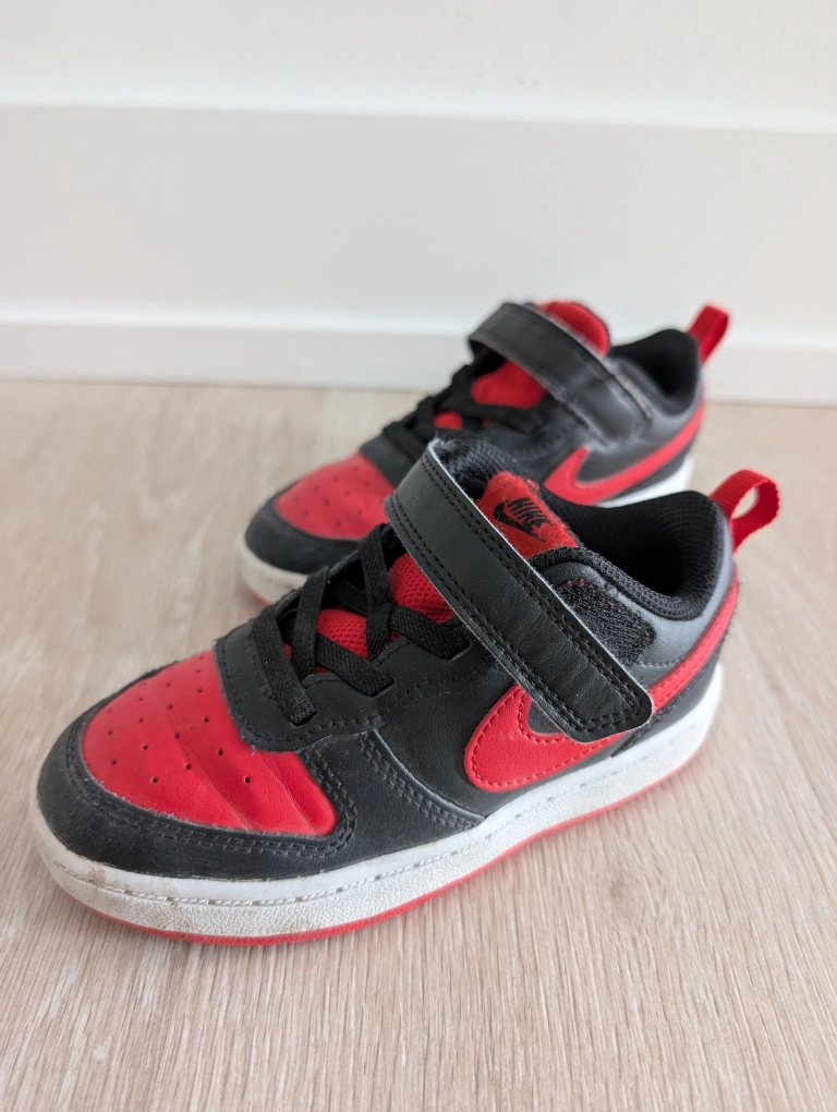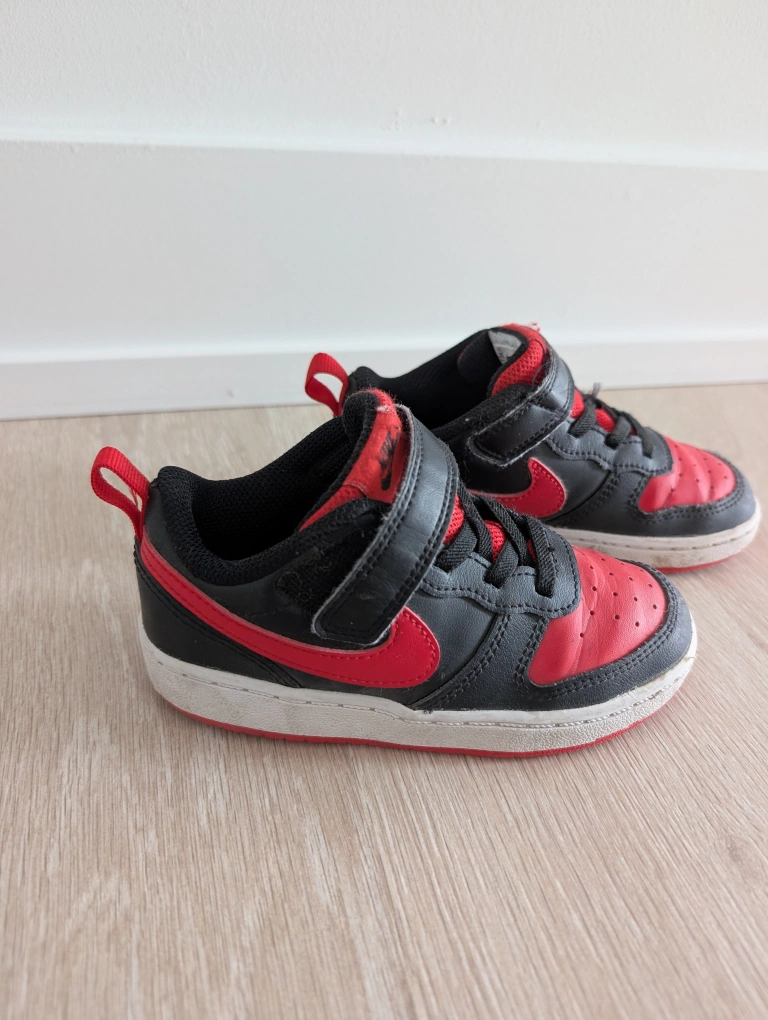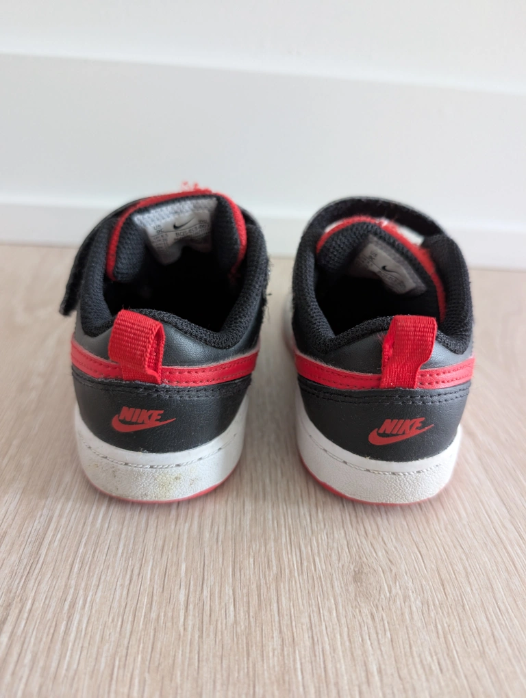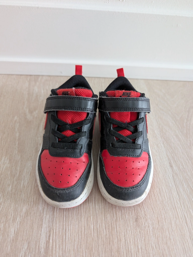 Black and red toddler sneakers. Velcro straps for easy on and off. Comfortable, great for everyday wear. Great condition. Smoke and pet free home. size EUR 26, US 9C