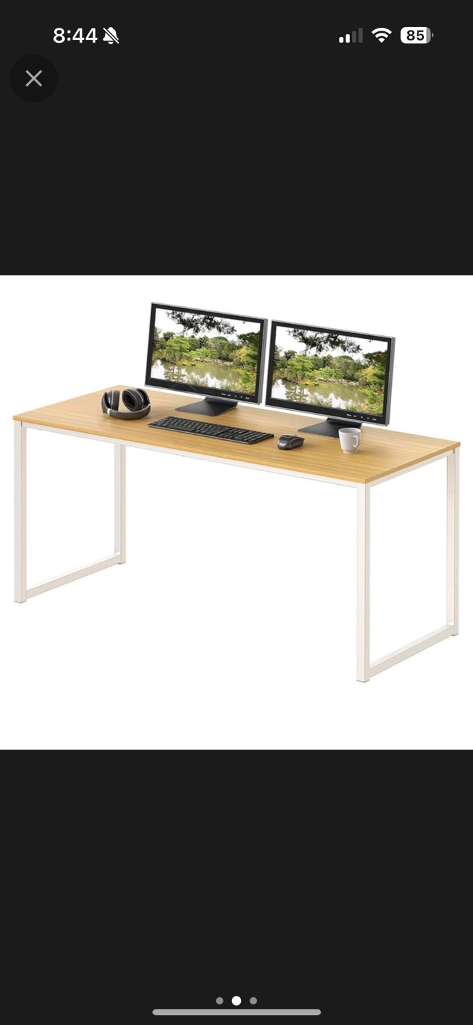 Spacious computer desk. Light coloured wood top, white metal frame. Perfect for home office or gaming setup. Minimalist design. Durable and easy to assemble. (Metal legs can be detached / assembled for easier transport)