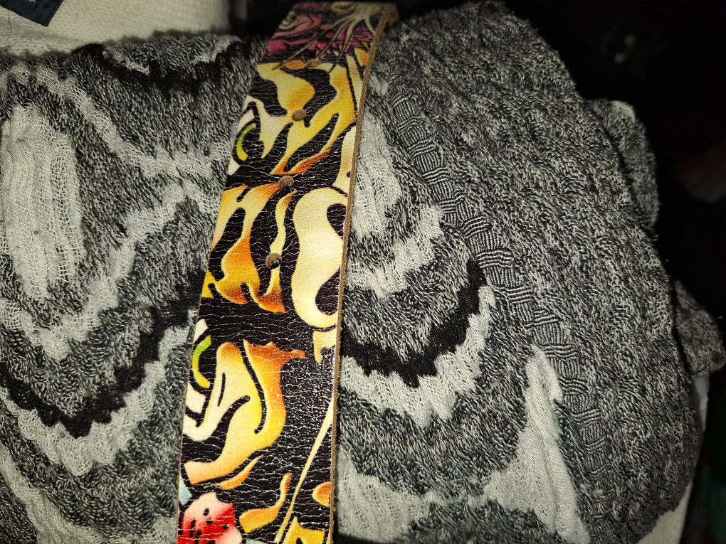 Ed Hardy women's leather belt. Features colourful tattoo-style artwork. Size Large.