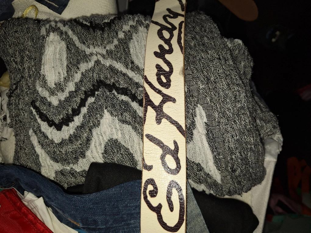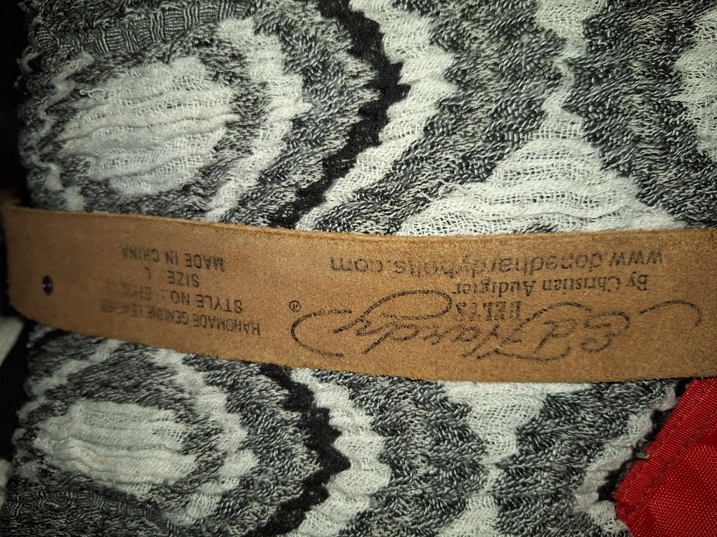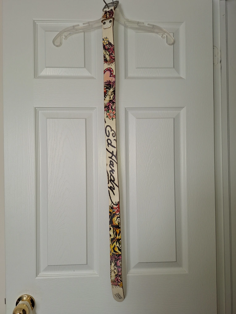 Ed Hardy women's leather belt. Features colourful tattoo-style artwork. Size Large.