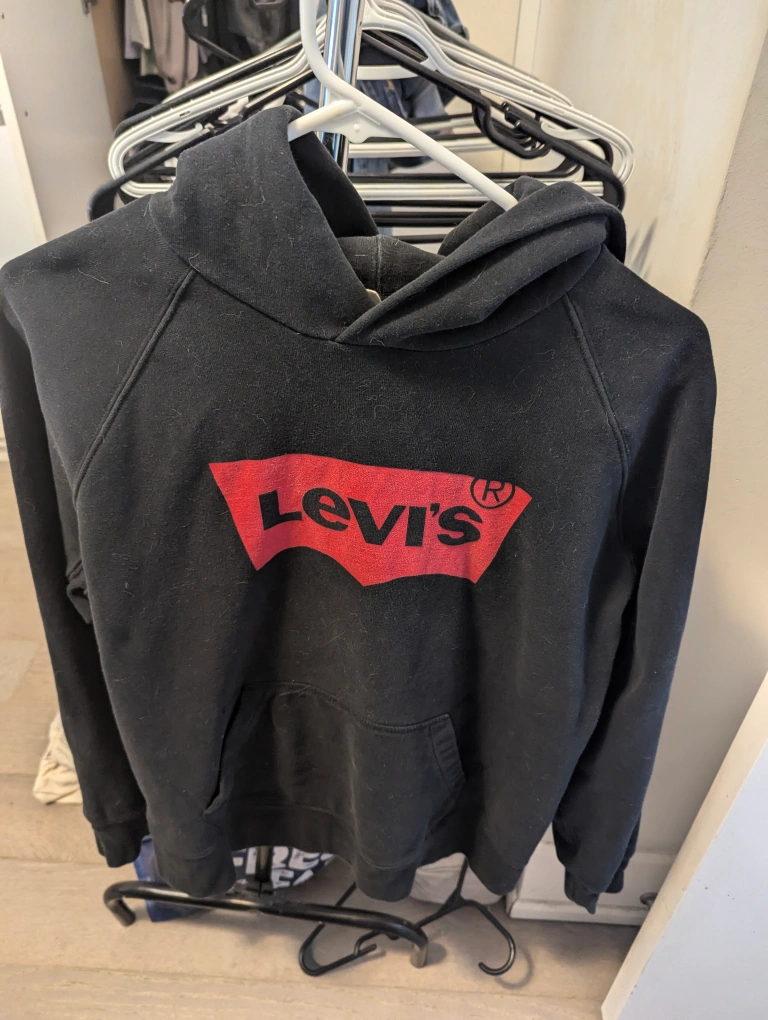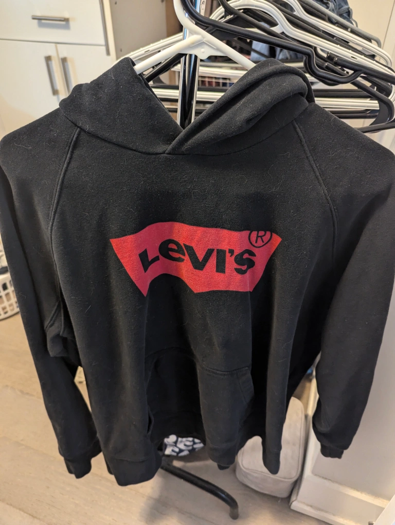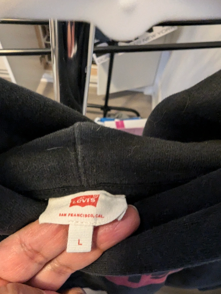 292Levi's black hoodie. Large size. Features a red Levi's logo. For women