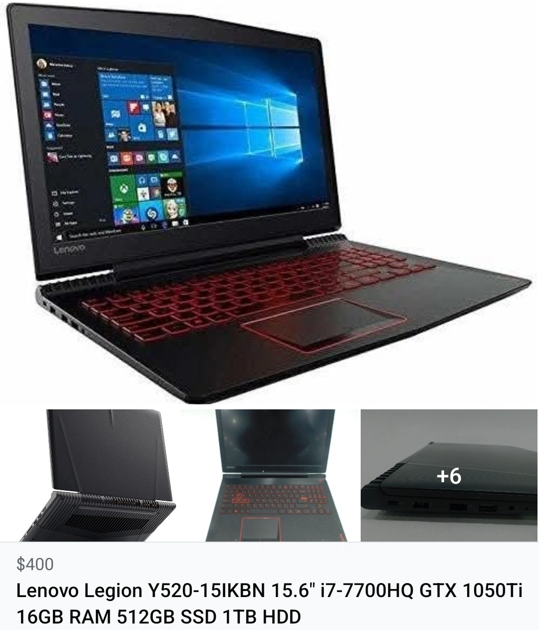 Lenovo Legion 15.6" i7 (16GB RAM 512GB SSD + 1TB) GTX 1050Ti