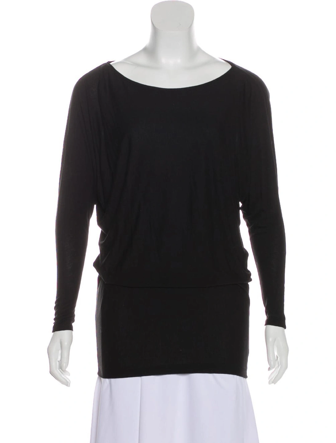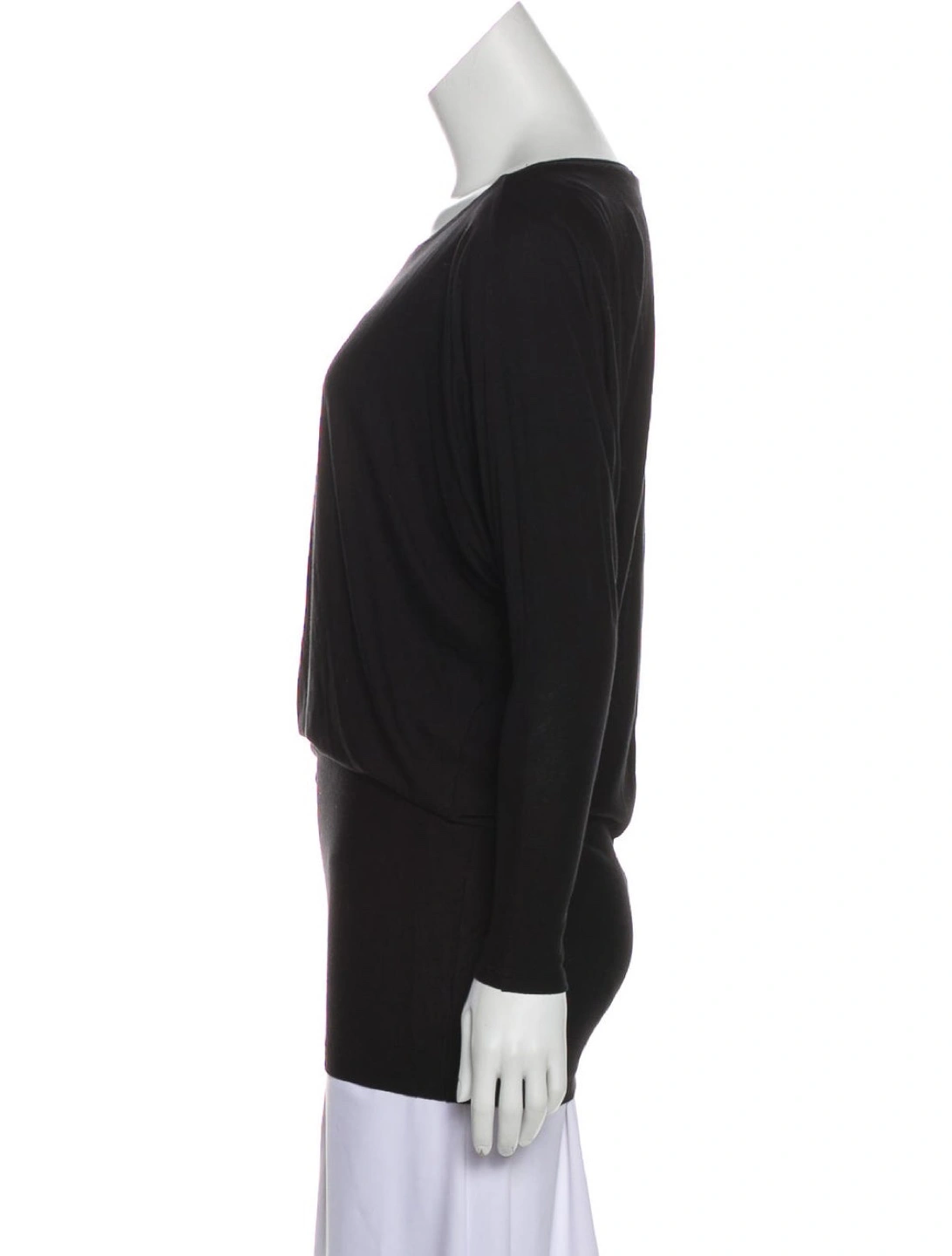 488Black Vince long sleeve top with tonal stitching throughout and scoop neck. Size XS. Bust: 42" Waist: 32" Length: 29" Fabric: 100% Viscose In great condition. Gently used and no flaws. Pickup at Burnhamthorpe and 427, or Front and Spadina