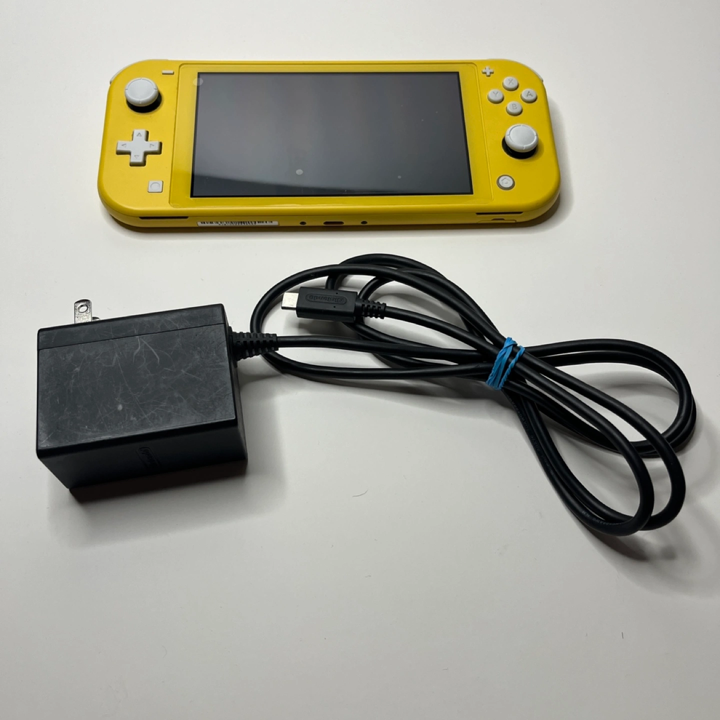 106Pre-owned Nintendo Switch Lite handheld gaming console. Yellow colour. Includes charger. Plays Nintendo Switch games. No issues works amazing!