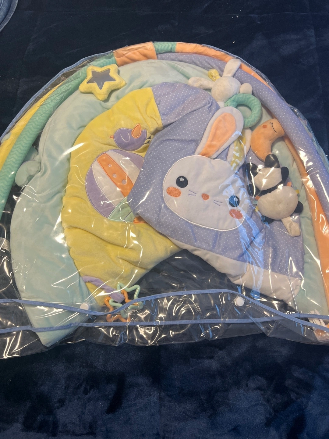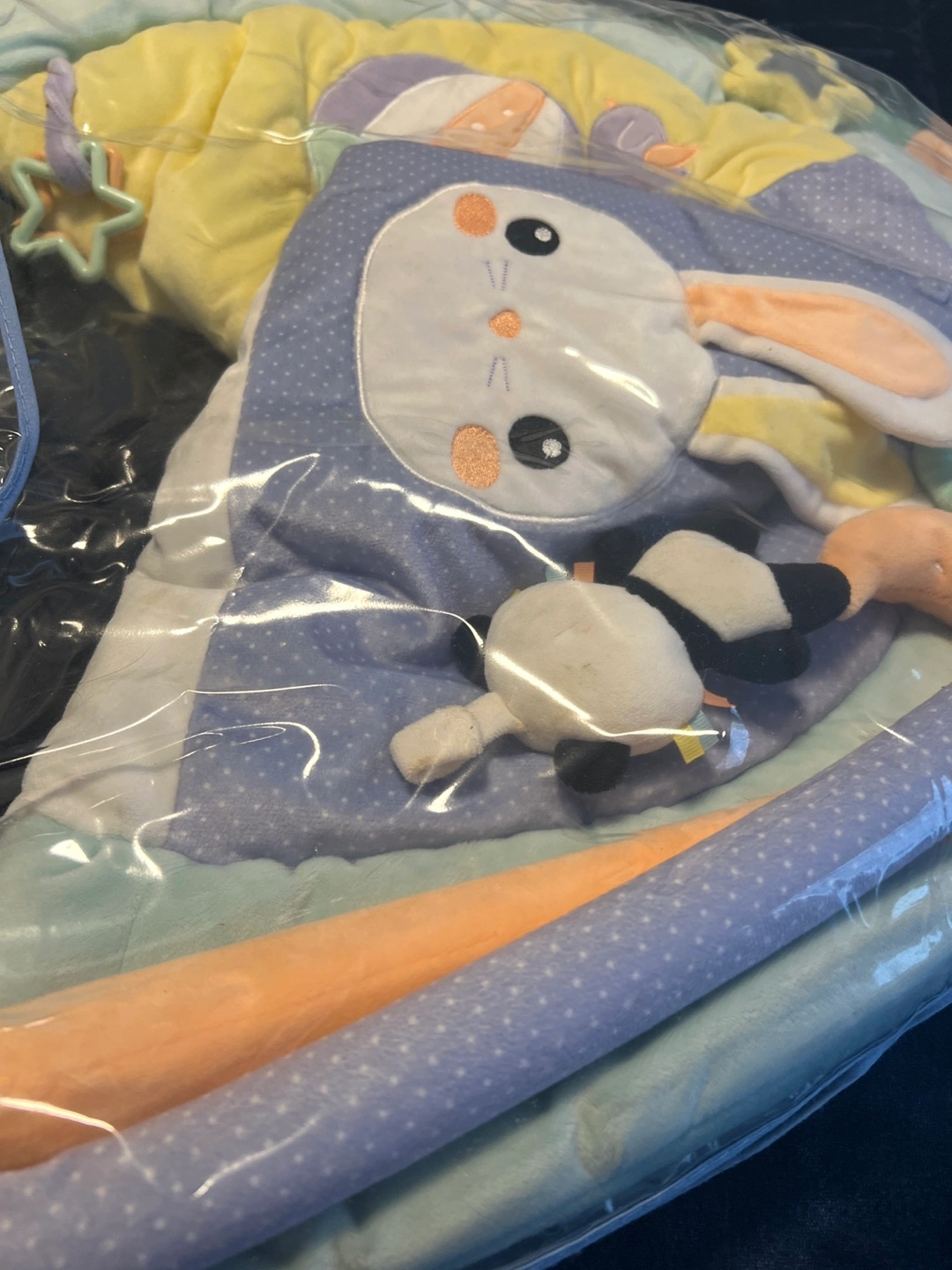 Adorable baby play/sleepmat, pastel colours. Features a bunny and panda design. Soft and plush material. Rainbow-shaped. Perfect for tummy time or playtime. Totally New, in original packaging.