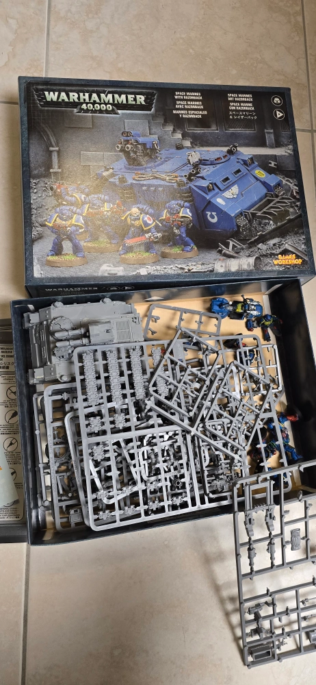 Assembled unpainted razerback with 6 painted marines, spare parts