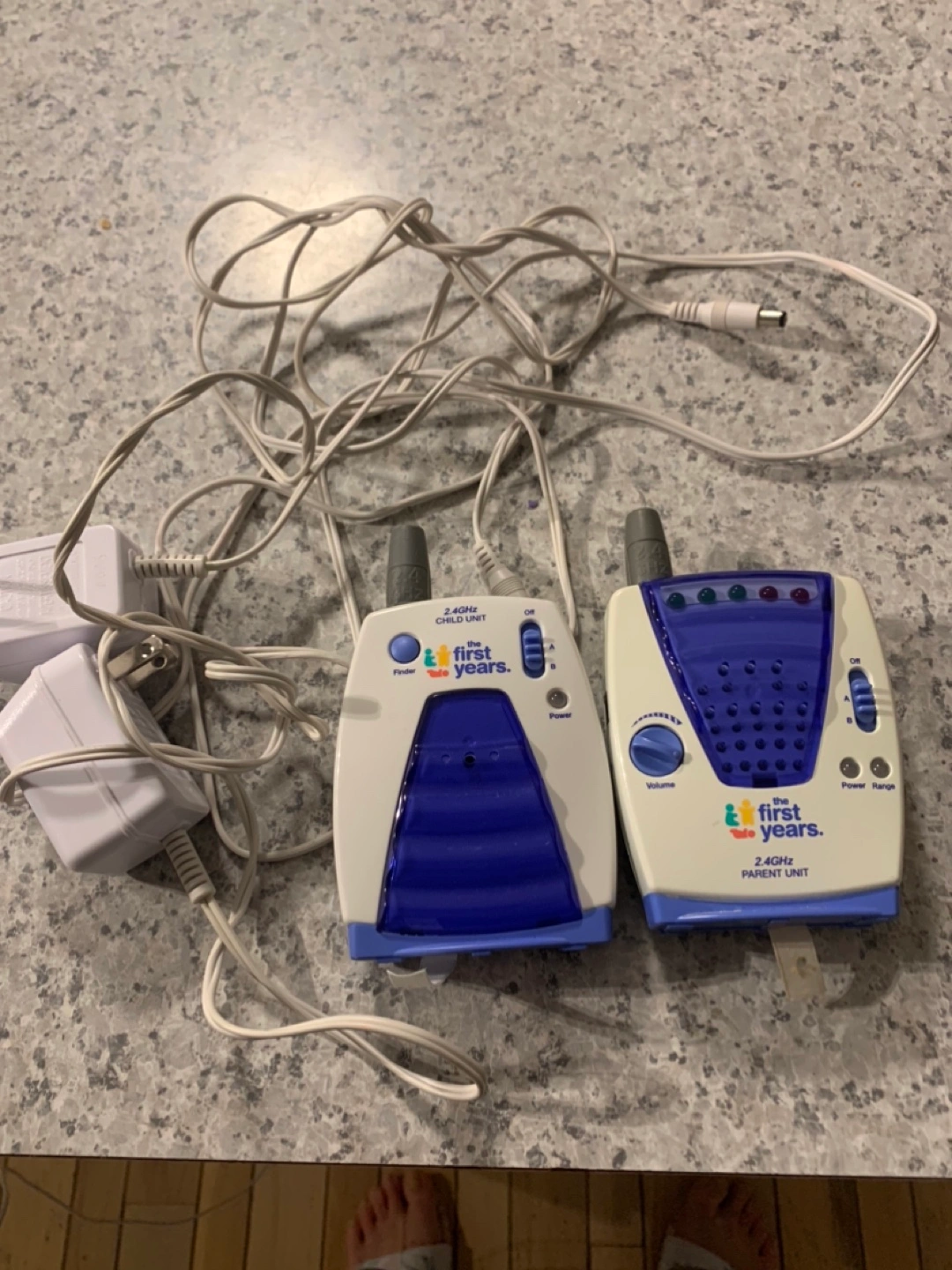 Used baby monitor. Includes parent and child units. Power adapters included. 2.4 GHz technology.