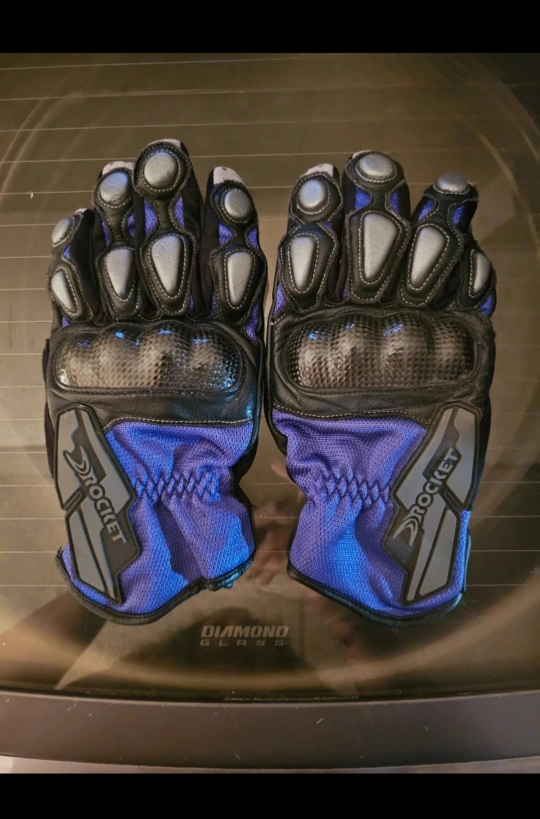 182Pair of lightly used motorcycle gloves. Phoenix brand, black and blue.