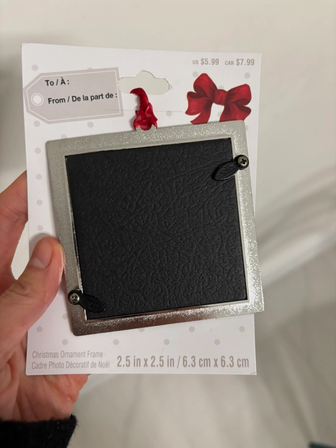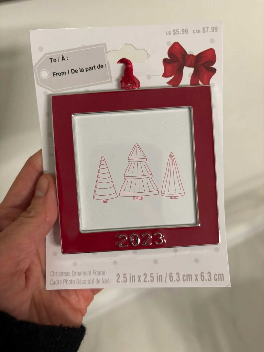 Smoke free pet free home Pick up only Yonge & Steeles Porch pick up Christmas ornament photo frame 2023 printed on red frame. Perfect for holiday photos.