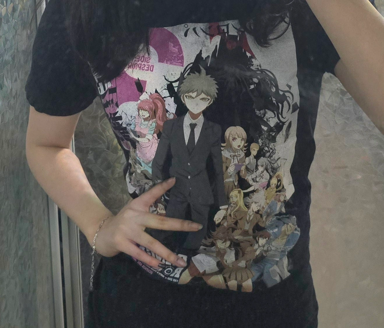 Black Danganronpa t-shirt. Features colourful anime graphic on the front. Small size.