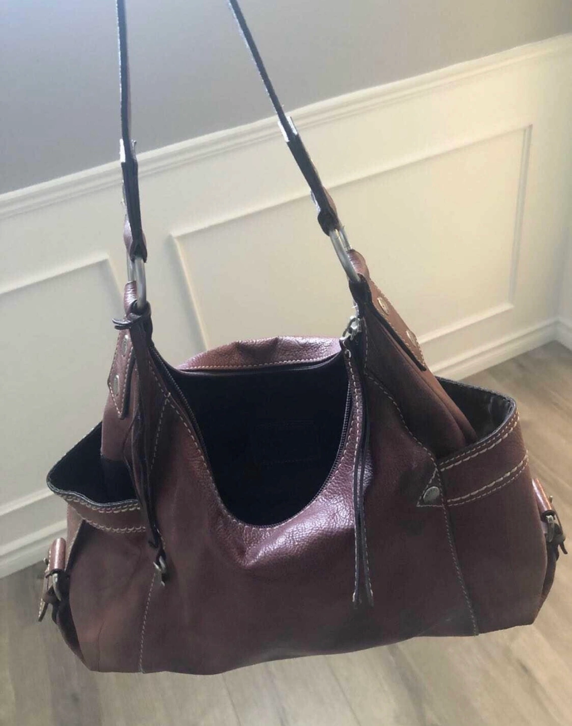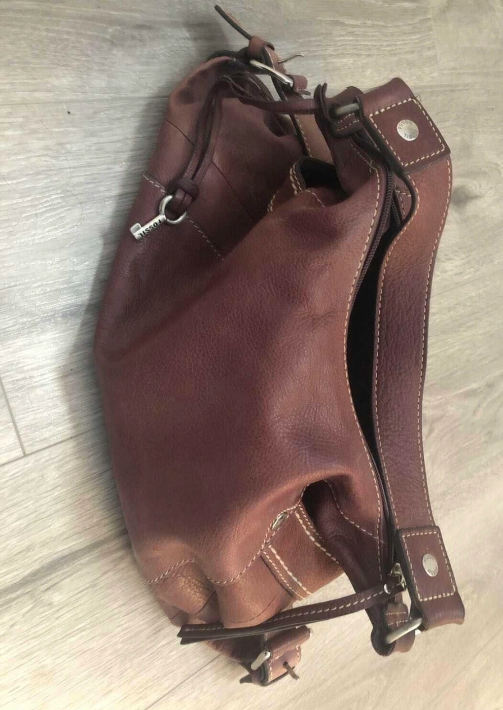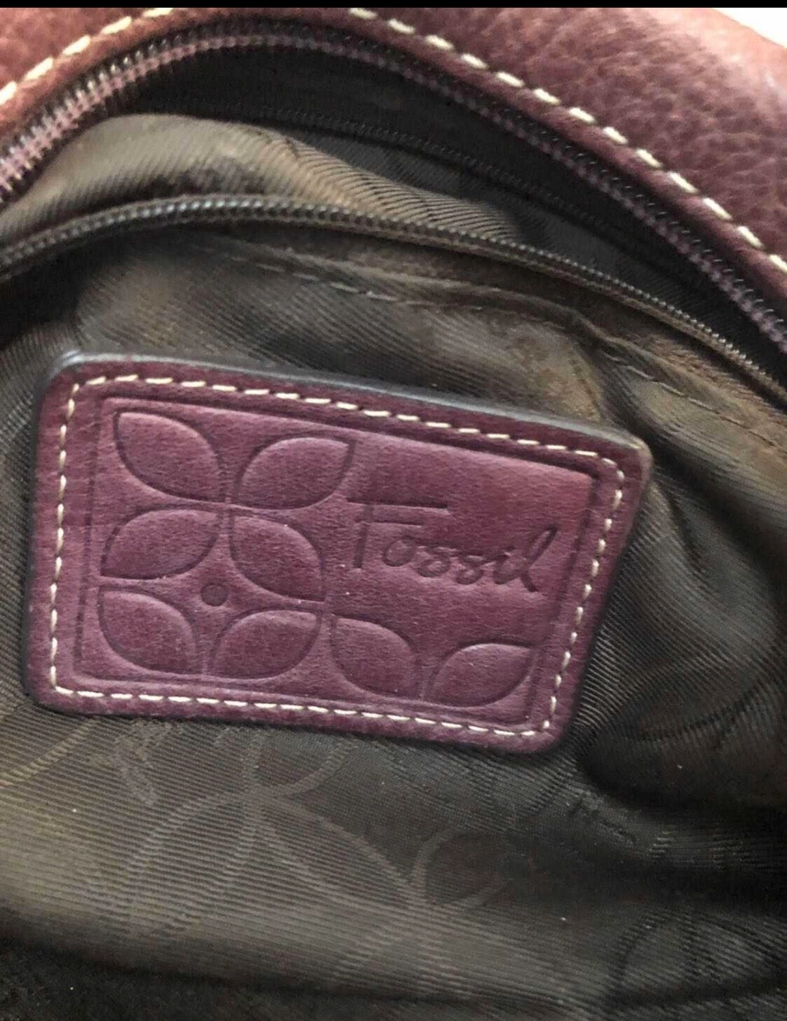 Well loved purple fossil bag although the leather has taken on a more vintage purple/brown colour over time