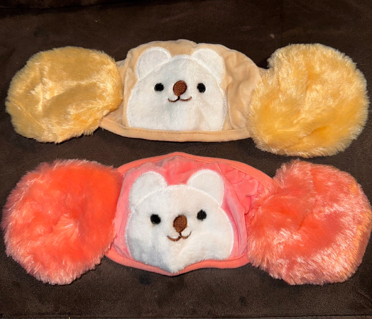 Two pairs of kids' fleece earmuffs. Soft and cozy.