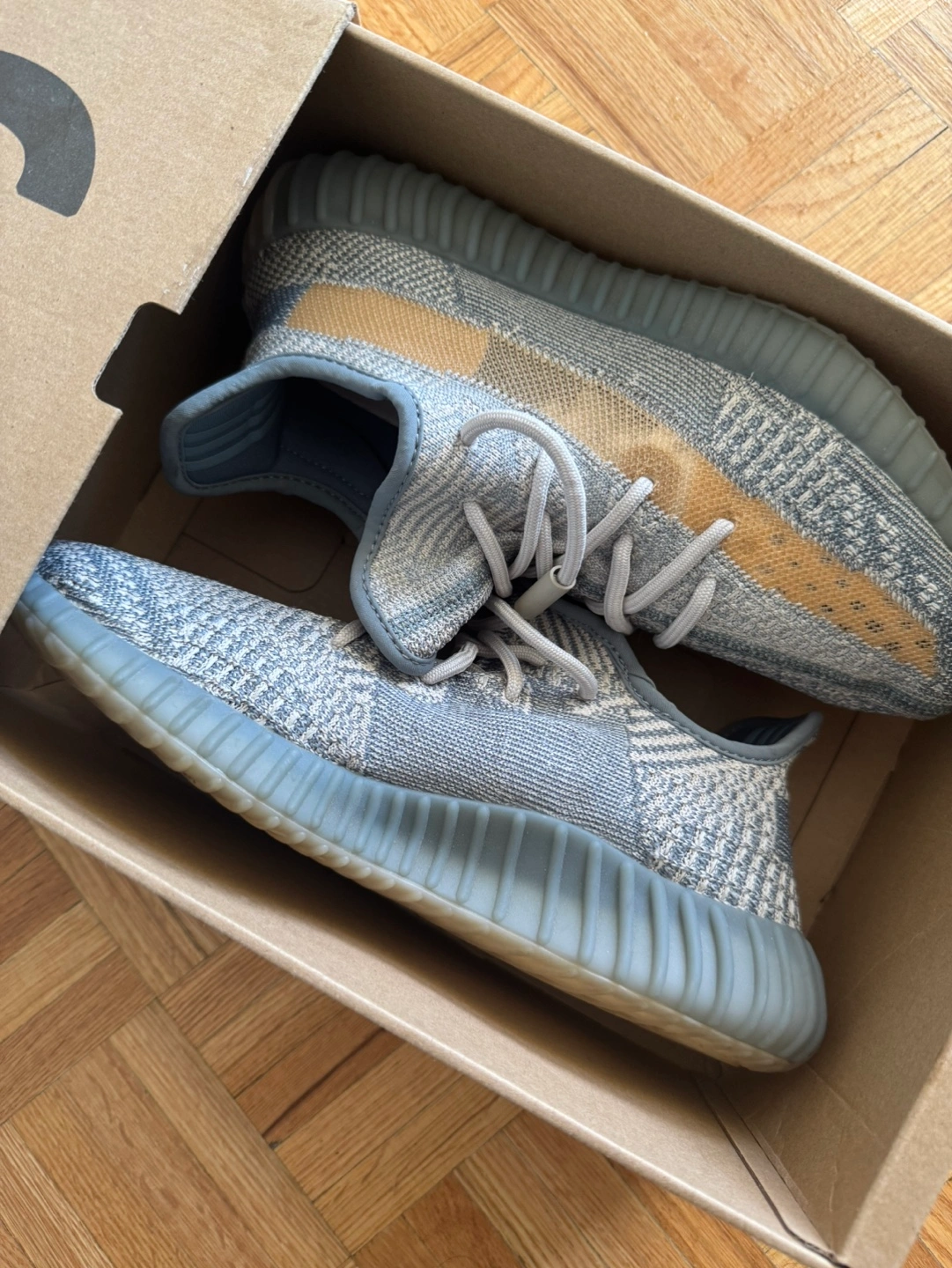 Original box and an extra shoe lace included (original package). Wearing twice, these are bigger than my size.