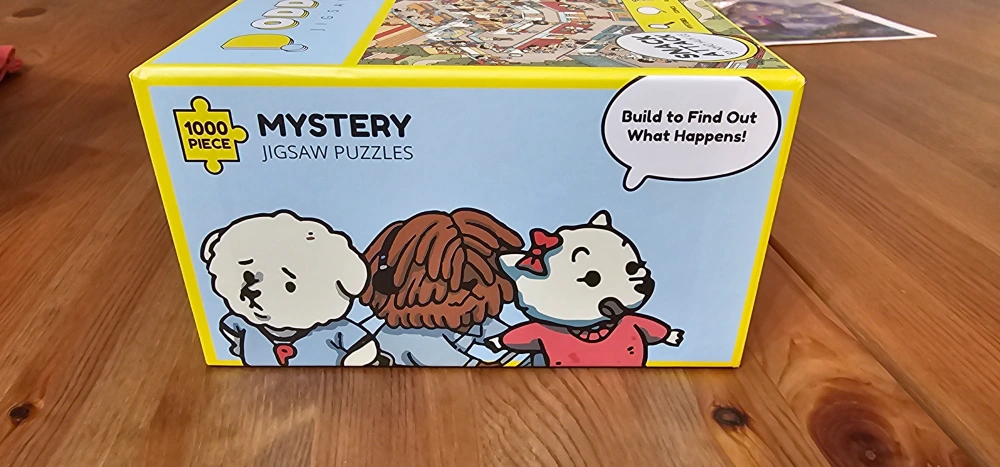 1000-piece jigsaw puzzle. Mystery theme. Illustrated puzzle depicts a busy school scene. Measures 50cm x 70cm. Includes two smaller illustrated cards.