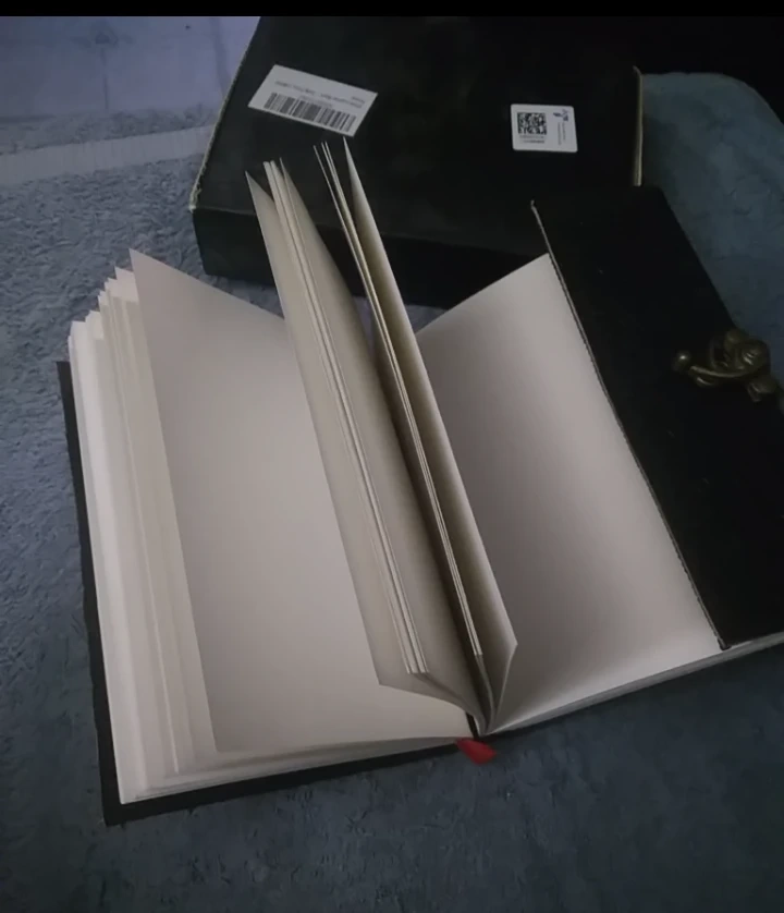 Unique Journal, black leather cover. Intricate design. Features a clasp and blank pages. Perfect for writing or sketching you're darkest emotions and thoughts