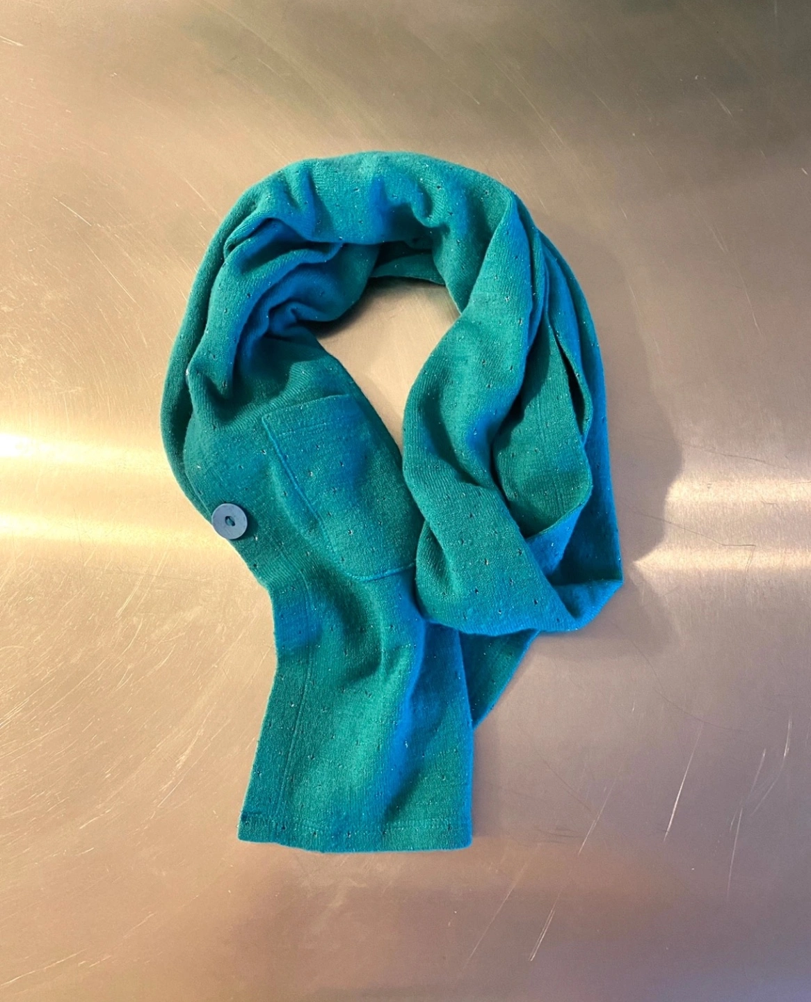 Teal color asymmetrical scarf, a unique piece! 🥰🤝