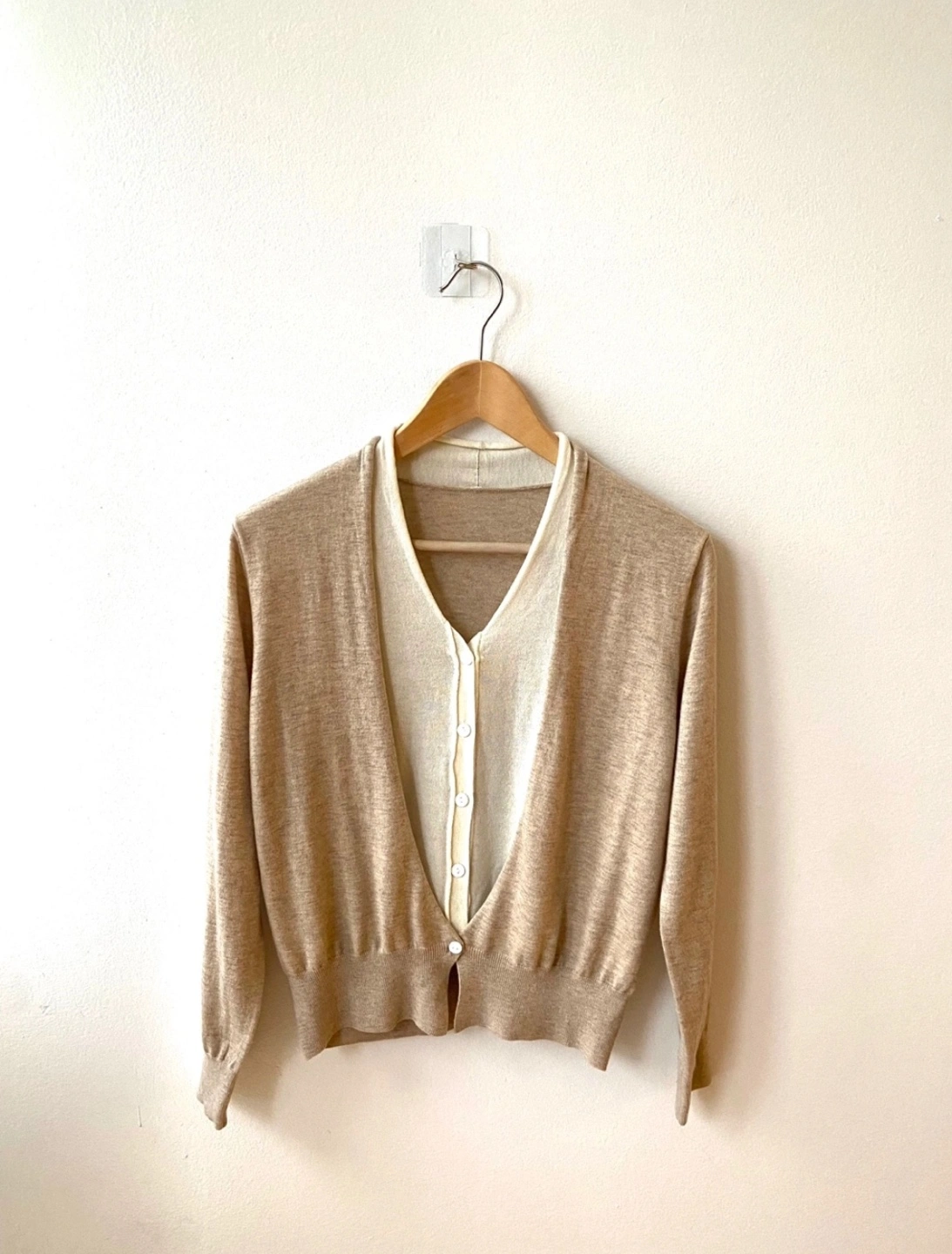 Lightweight cardigan sweater. Beige colour with cream underlay. Long sleeves, button front. Great layering piece.🥰💝🤝