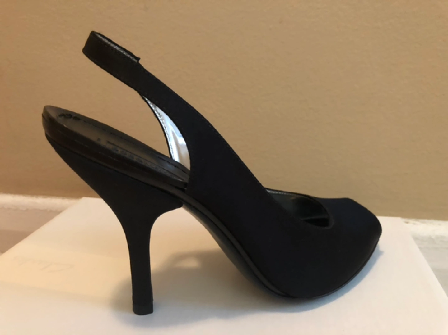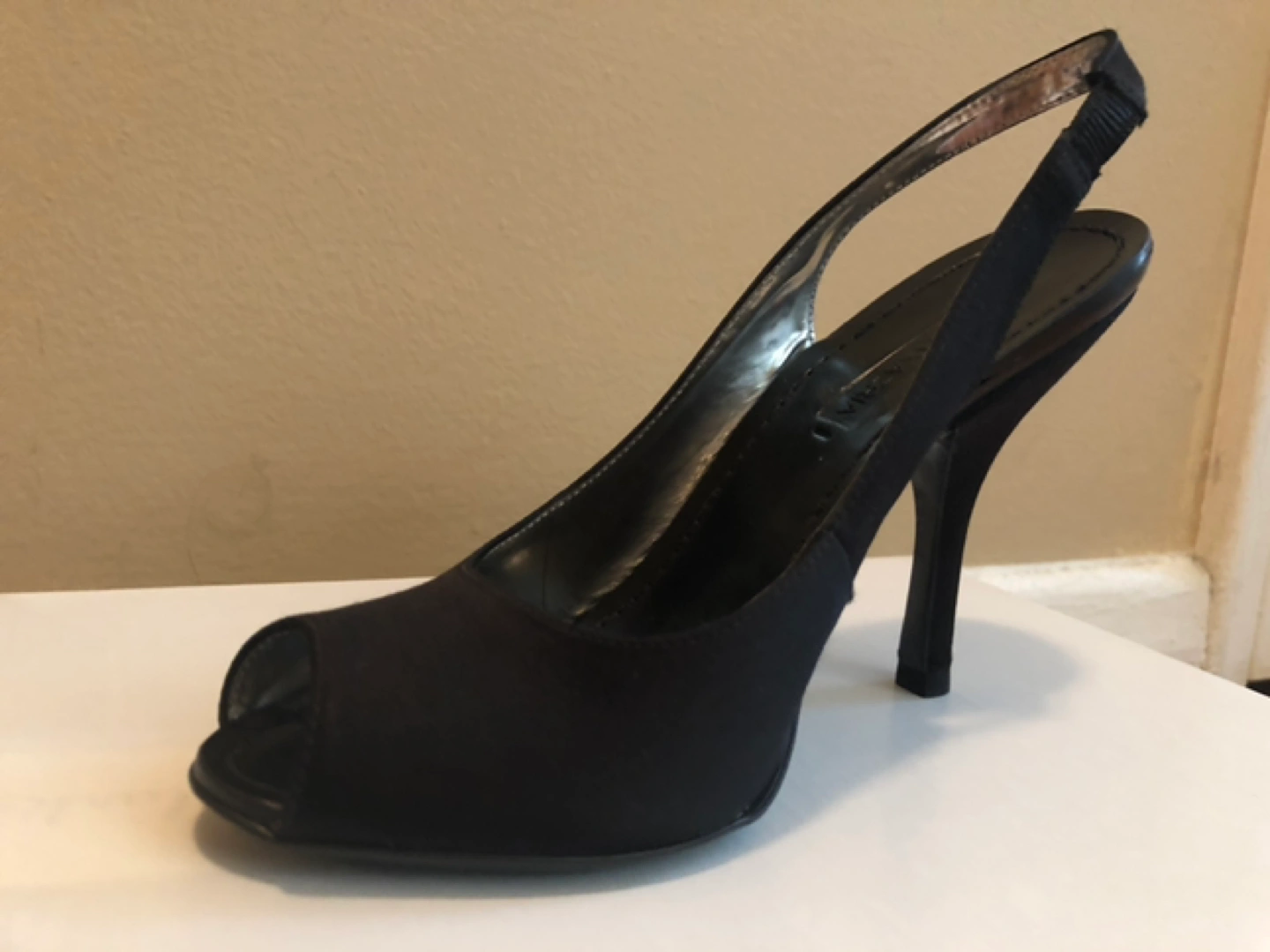 BCBGMaxAzria Black Satin Open Toe Slingback High Heels Size 6.5
