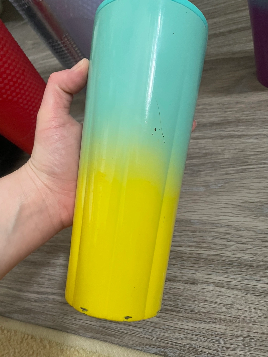 The two metal ombré cups have the damage shown in photos