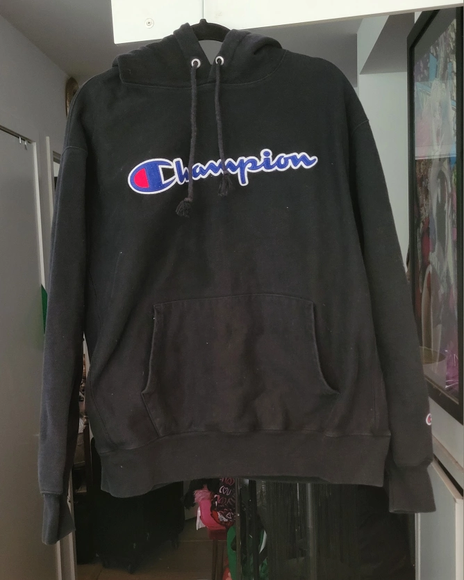 Black Champion Reverse Weave hoodie. X-Large. Classic design. Great for layering or casual wear.