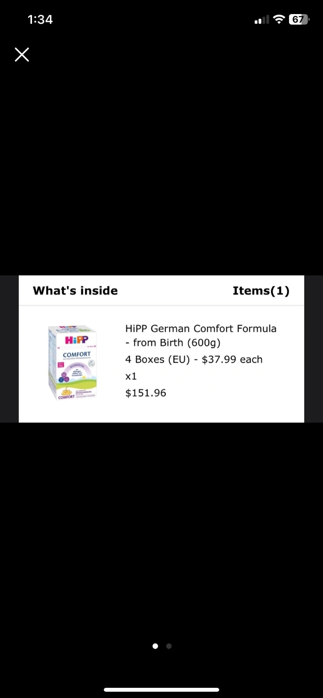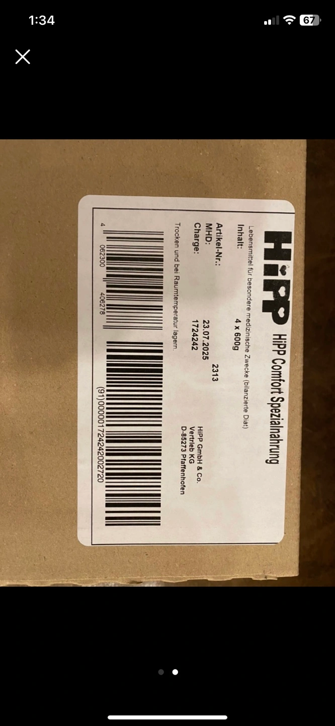 One box of HiPP German Comfort Formula for infants from birth. Each box contains 600g of formula. European Union (EU) packaging.