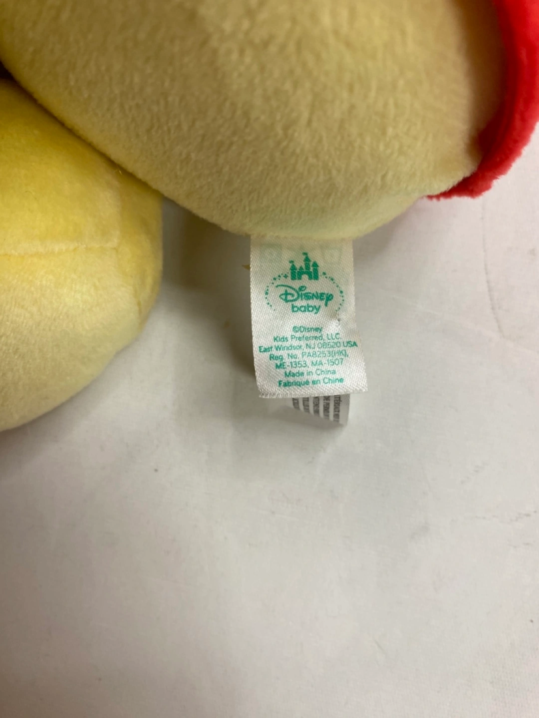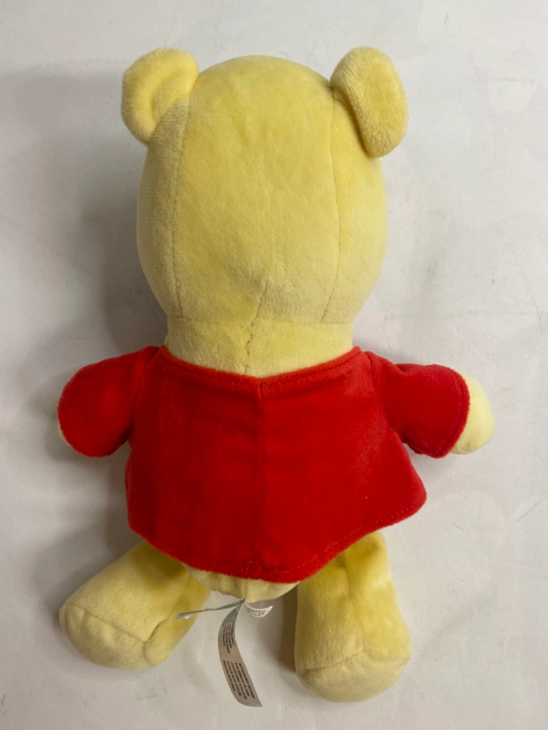 Adorable Winnie the Pooh plush toy. Soft, cuddly, and perfect for a child's bedroom. Features a red shirt with Pooh embroidered on the front. Made by Disney Baby.