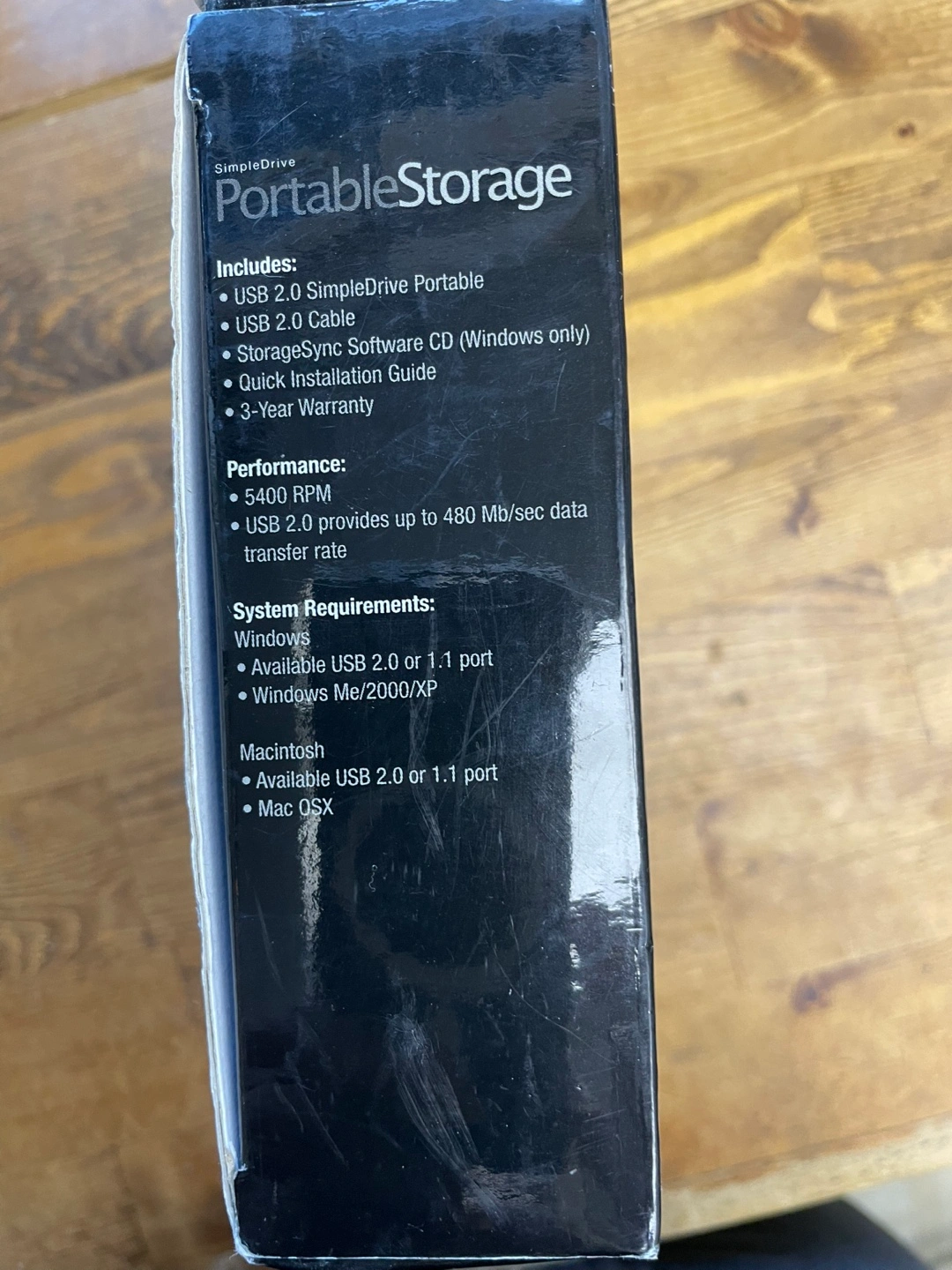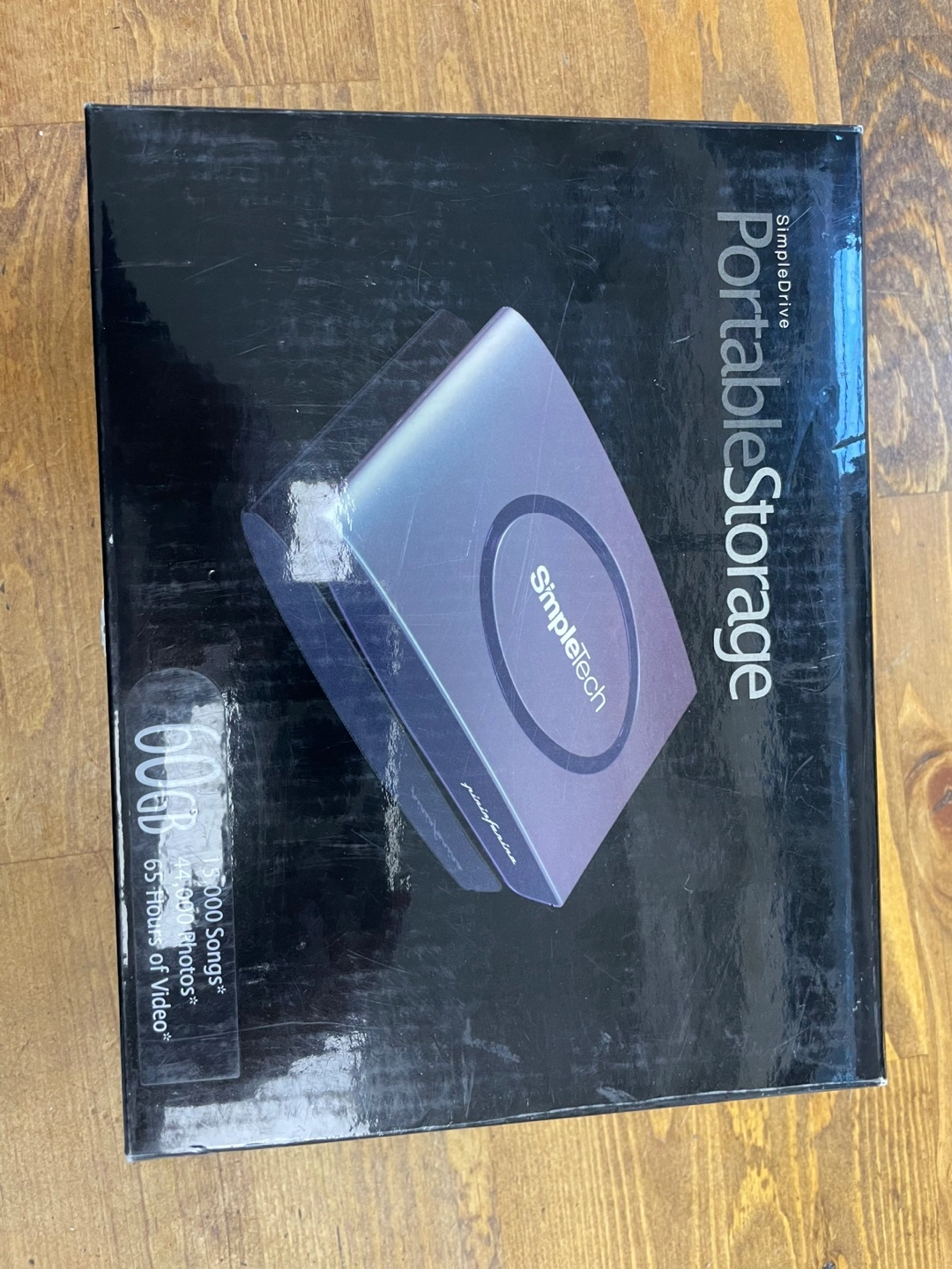 Portable hard drive. 60GB capacity. Includes USB 2.0 cable and software. Compatible with Windows and Macintosh.