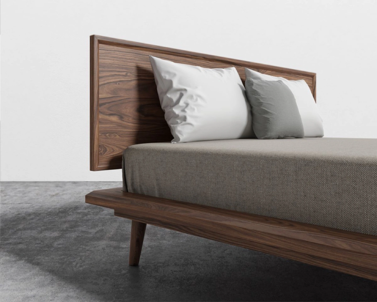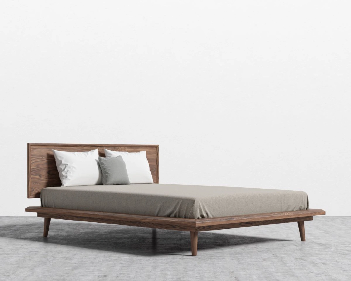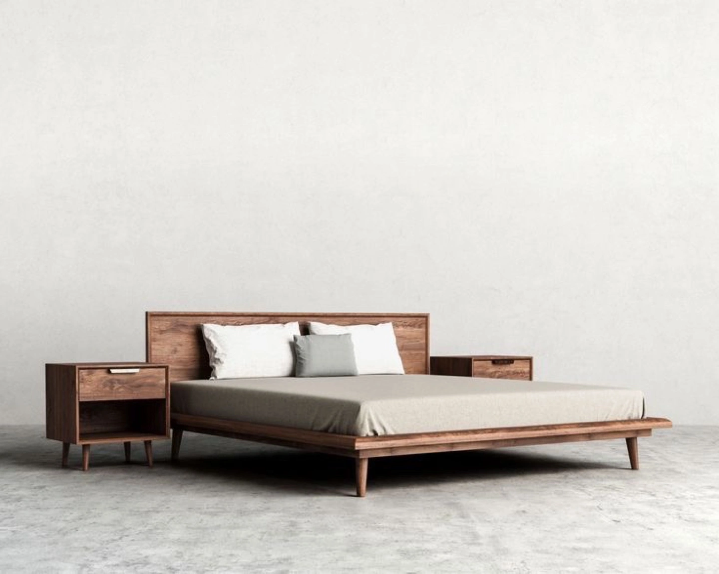 Mid-Century Modern Walnut Queen Bed Frame with Two Nightstands
