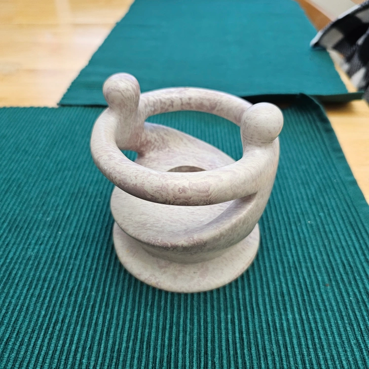 108Unique stone tea light or candle holder. Features two figures embracing in a circular design. Free to a good home! Or even a subpar home!