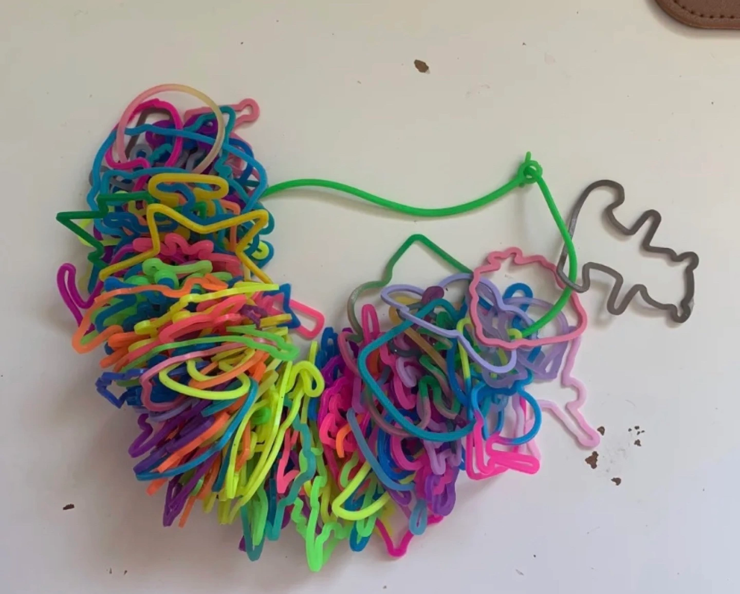 Large quantity of colourful rubber bands. Includes various shapes and sizes.