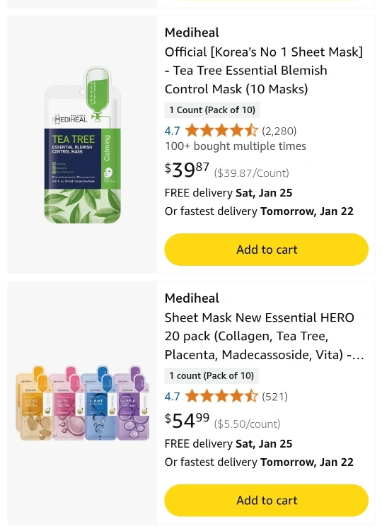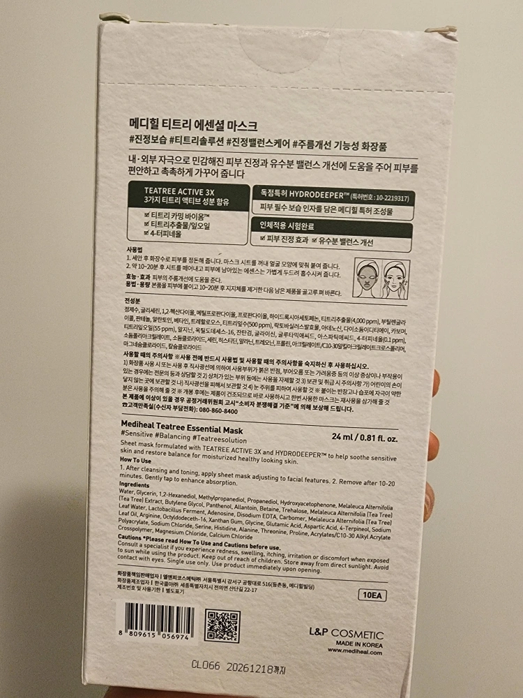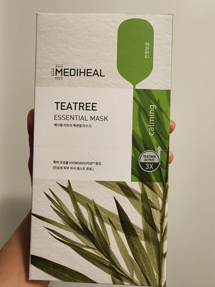 New, sealed box of 10 MediHeal Tea Tree Essential sheet masks. Calming formula. Helps soothe sensitive skin. Hydrodeoper™ technology.