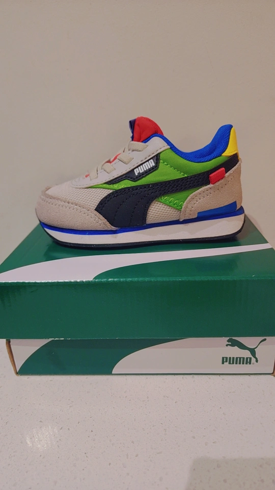 Infant Puma Future Rider Play On sneakers. Size 6c . Grey /Multicoloured design. New in box.