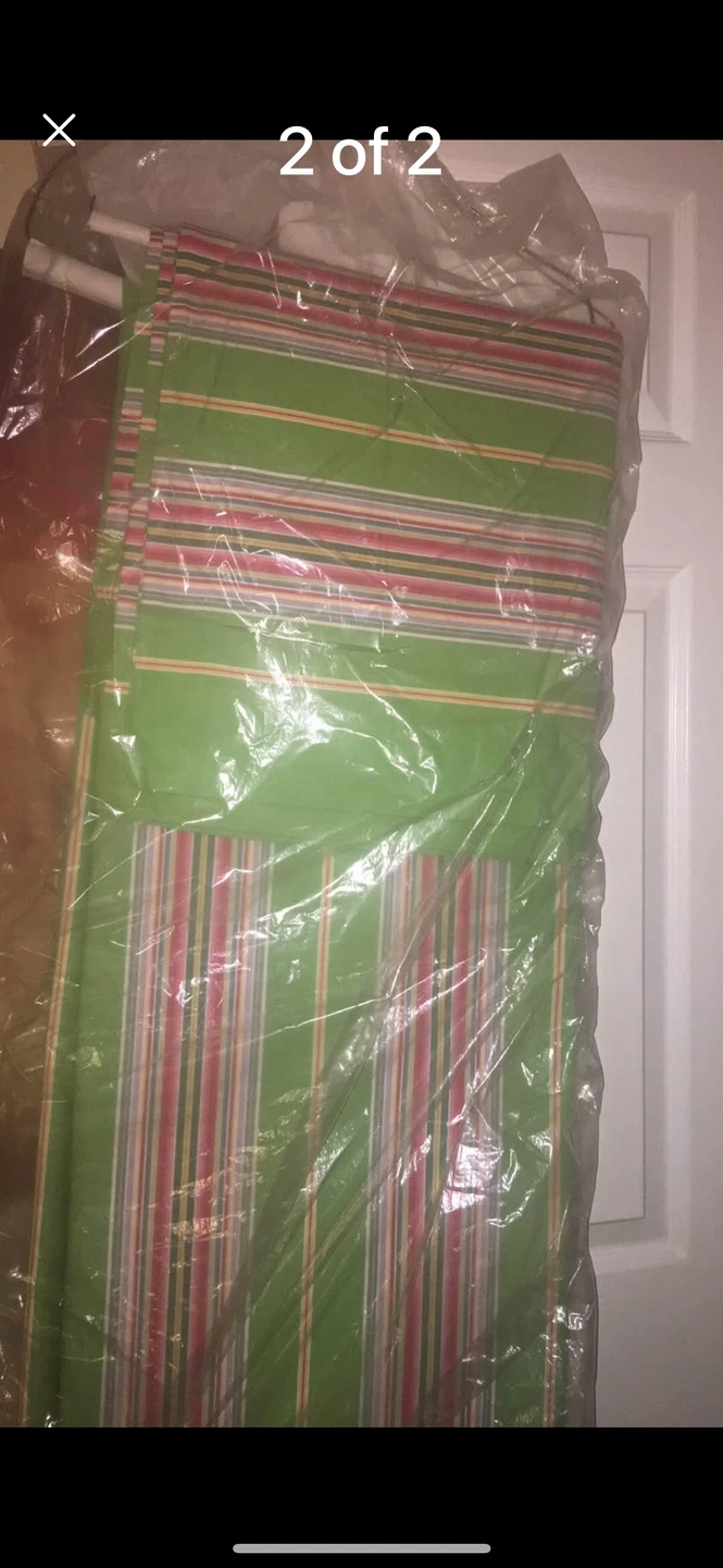 King size duvet cover and euro shams. Multicoloured stripes, green base. Dry cleaned, like new. Very pretty!